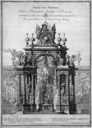Projet d'un reposoir. Radierung. 45,4 x 33,8 cm. Um 1781. Wollin 9 III.