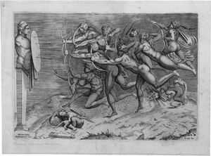 Lot 5020, Auction  107, Beatrizet, Nicolas, Die Laster, welche ihre Pfeile gegen die Tugend abschiessen