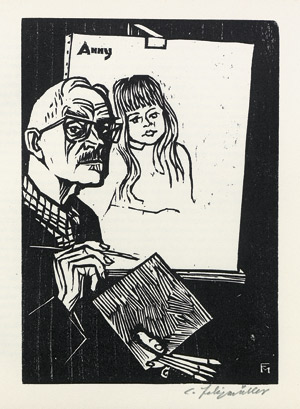 Enthält die signierten Orig.-Holzschnitte: Selbstbildnis malend (Söhn 691). Ich zeichne in Berlin Friedrich Wolf (427). Künstlerstudio (513). Nach der Arbeit (Heimweg) 514. Titel mit eigenhändiger Widmung des Künstlers. – Wohlerhalten.