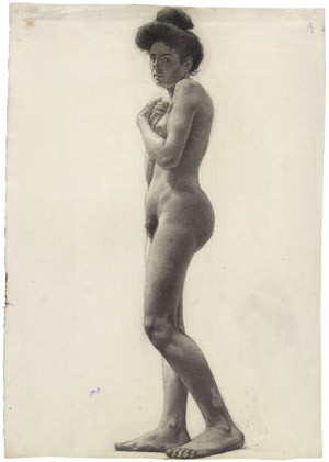 Ende 19. Jh. Weiblicher Akt mit Hochfrisur, stehend.