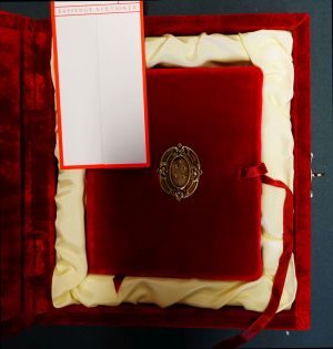 Dieses besonders kleinformatige Buch, ähnlich einem Stundenbuch, mit 9 Miniaturseiten zur Passion Christi stammt aus den Jahren 1451/1452. Die Zeichnungen, ursprünglich auf Pergament mit karmoisionroter Grundierung mit Metallstift, wurden mit roter und grauer Aquarellfarbe sowie weißer Gouache ausgemalt. Sie stammen von Fra Angelico (1395-1455), Dominikanermönch aus Florenz und bedeutender Künstler, der mit diesen Zeichnungen auf kostbarstem Purpur-Pergament die wichtigsten Szenen der Passion einfing.