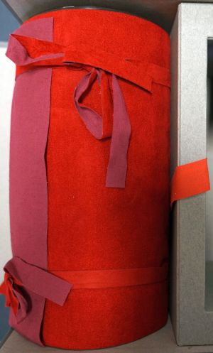 Rotolo Ms. 724/3 der Biblioteca Casanatense in Rom. 1 faksimilierte Schriftrolle. 700 x 23 cm. Rote OSamthülle in OPappkassette mit goldgeprägtem RTitel und goldgeprägter Vorderdeckelillustration. Rom, Priuli & Verlucca, 1994.
