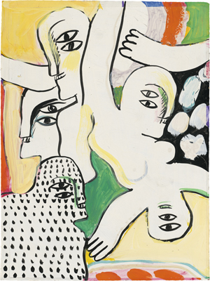 Deformierte Gliedmaßen verbinden sich zu einer Variation eines Kopffüßlers mit vier zur Seite geneigten Köpfen. Für Antes, der sich mit der Entwicklung seiner berühmten Kunstfigur vom Informel und von der abstrakten Kunst absetzte, blieb diese Gestalt lange eines seiner künstlerischen Hauptmotive. Als einer der ersten Künstler im Nachkriegsdeutschland ließ er den in seinen Augen unlebendigen, unmenschlichen und unbewohnbaren Raum abstrakter Malerei hinter sich und setzte diesem die markante Figur des Kopffüßlers entgegegen.