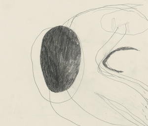 In dieser kleinen, reizvollen Kugelschreiberzeichnung stellt Hannah Höch mit sicherem Strich ein Totem dar.