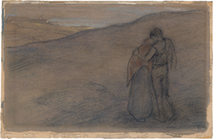 Lot 6904, Auction  121, Hofmann, Ludwig von, Liebespaar auf einem Hügel vor sonnenbeschienener Landschaft.