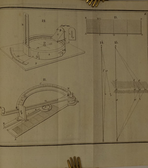 ADB V, 8. – Erste Auflage der geodätisch-militärischen Abhandlung des preußischen Generalmajors Carl von Decker (1784-1844); ein zweiter Druck erschien noch im selben Jahr. Mit Beschreibung der bei der Landesaufnahme verwendeten Gerätschaften, einem Reflektor, einer Patent-Bousole, einem neuartigen Höhenmesser und Schrittmesser. Die Tafeln mit Abbildung der Instrumente und der Messverfahren, – Schwach braunfleckig, sonst wohlerhalten. Vorsätze etwas leimschattig.