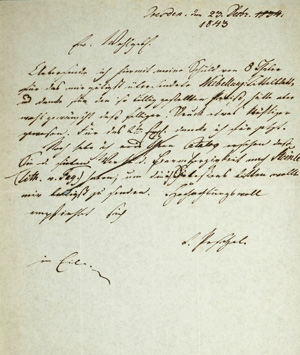 Devrient, Ludwig, Berliner Hofschauspieler, einer der berühmtesten dt. Bühnenkünstler der Theatergeschichte, legendär durch seine Freundschaft mit E.T.A. Hoffmann (1784-1832). Eigh. Albumblatt m. U. "L Devrient". 1 S. Goldschnitt. Quer-8vo. Berlin 15.VIII.1828.