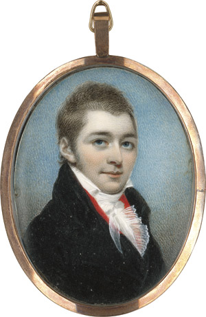 (1778 – 1821, London)Bildnis eines jungen Mannes genannt Mr. Sutton, in schwarzem Rock mit roter Weste