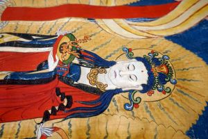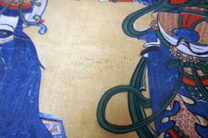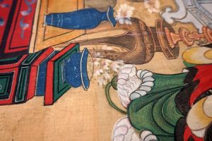 Chinesisches Rollbild. Anbetungs-Ritual mit Altar
