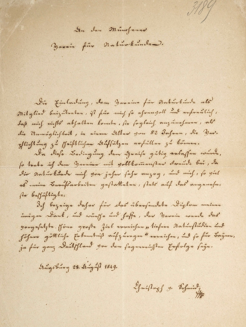 (1768-1854)2 Briefe an den Münchener Verein für Naturkunde. 1849