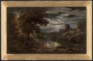 18. Jh. Diana und Kallisto bei Mondschein an einem Fluss.