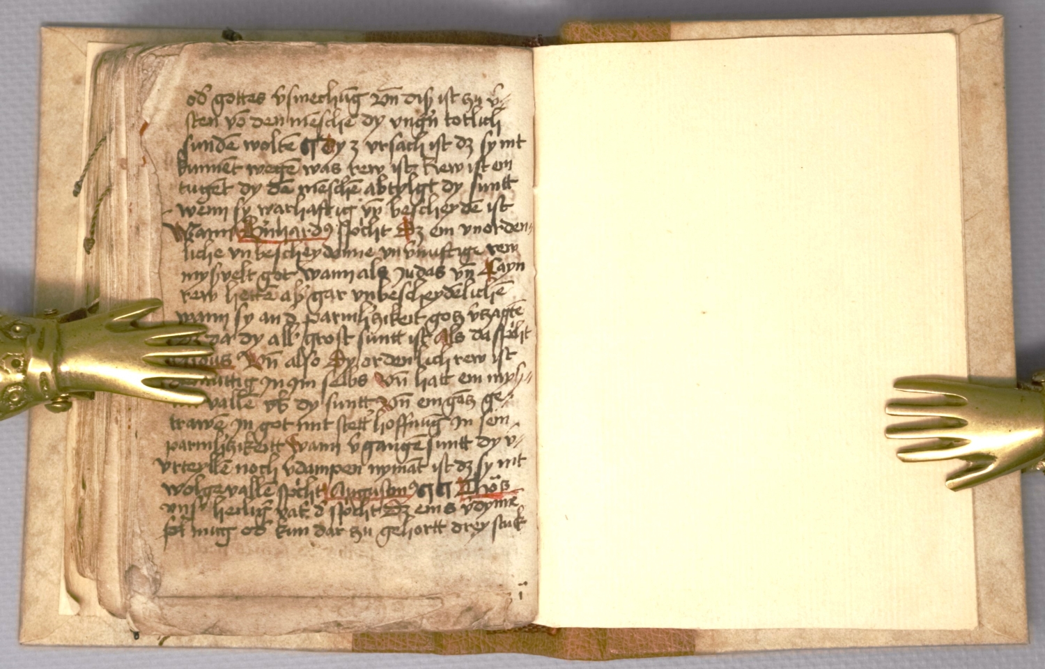 Fragment von in bairischer Mundart geschriebenen Erbauungstexten und Predigten, die von dem Heidelberger Mediävisten und Germanisten Gerhard Eis (1908-1982) einer größeren, hier ebenfalls zum Aufruf kommenden Handschrift entnommen und einzeln gebunden worden. Enthalten sind (nach dem Handschriftencensus):