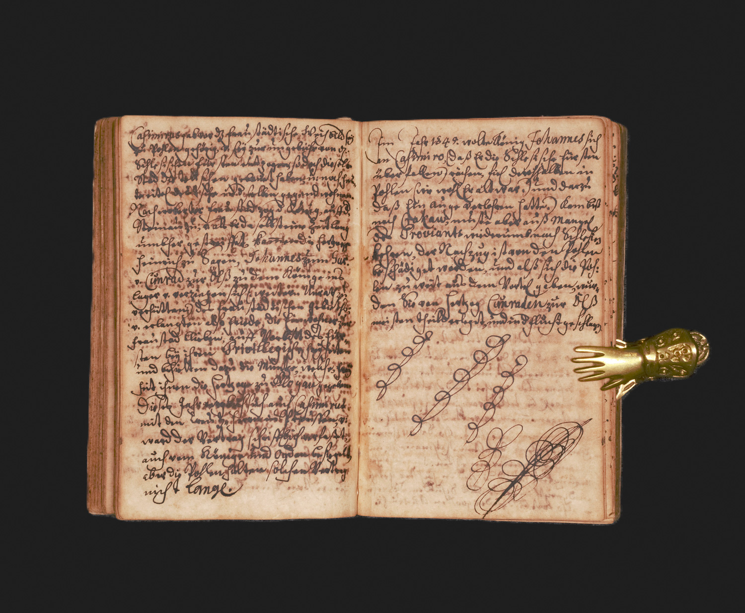 "Breßlauer Tage Buch oder Beschreibung derer Geschichte. Welche sich von Erbauung der Stadt Breßlau in unterschiedlichen Zeiten und Orten begeben hat. Wie auch allerhandt Merkwürdigen Sachen. Beschrieben per Anonimum Anno 1707 adj. Primo July Wie es demselben durch seinen gutten Freundt ist Communiciret worden." Deutsche Handschrift in schwarzbrauner Sepiatinte auf Papier. 159 Bl., davon 147 beschrieben. Schriftraum ca. 15 x 10. Format 17 x 10,5 cm. Etwas späterer marmorierter Pappband (berieben). Breslau 1707-1711.