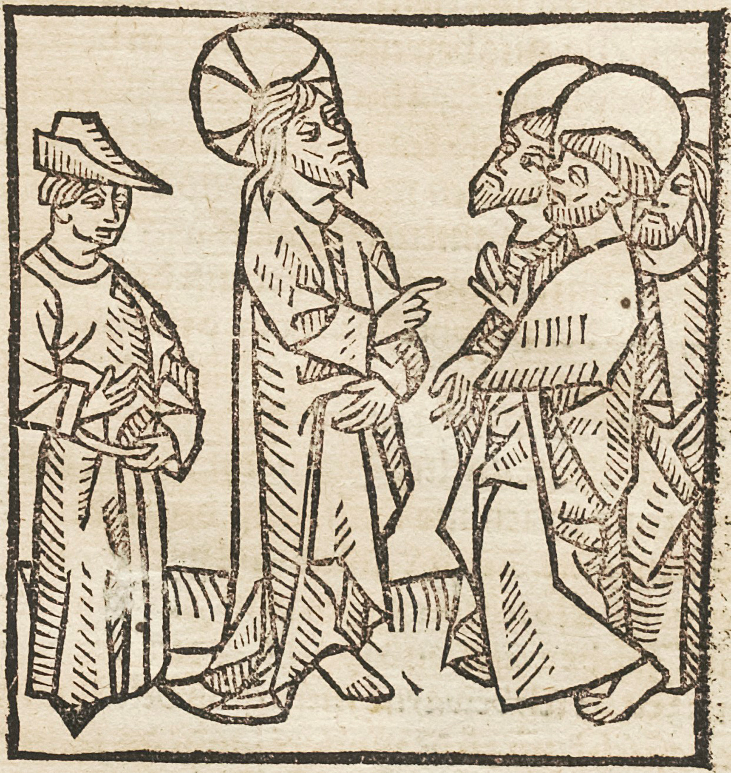 Die zumeist aus Predigtdrucken stammenden Holzschnitte zeigen biblische Szenen, darunter Christus im Streitgespräch mit den Pharisäern, Gelehrte in arkadenartiger Architektur sowie eine Kirchenszene mit Mönchen, Jüngern und weiteres. – Stellenweise wasser- und braunfleckig. Geringe Randläsuren und Gebrauchsspuren.