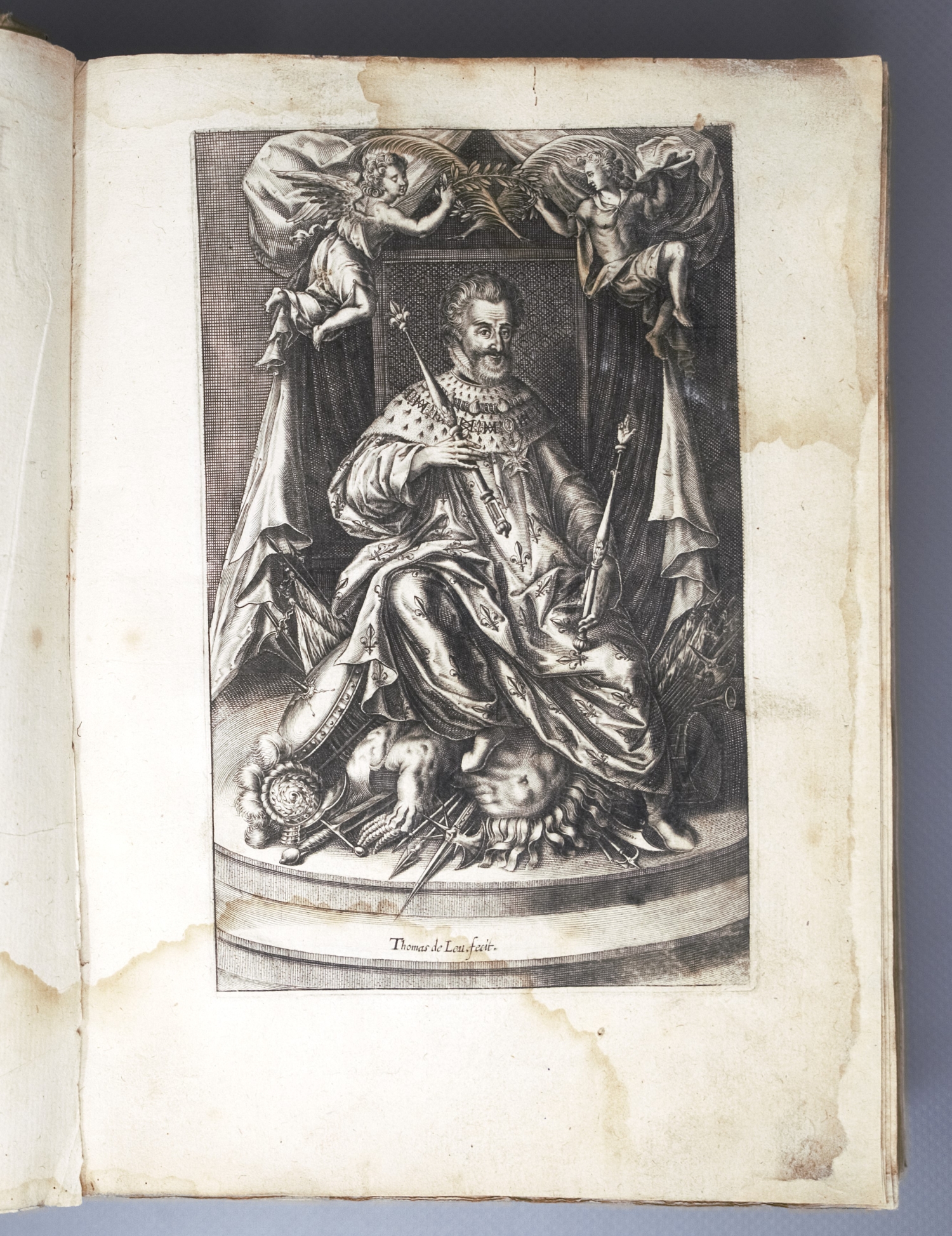 Raemon, Florimond de. L'anti-christ et l'anti-papesse. 14 nn., 485 num., 17 nn. Bl. Mit Titelkupfer, gestochener Portraittafel (in Pag.) Heinrichs IV. von Thomas de Leu. 23 x 16,5 cm. Flexibles Pergament d. Z. (etwas gewellt, angestaubt und fleckig). Paris, L'Angelier, 1599.