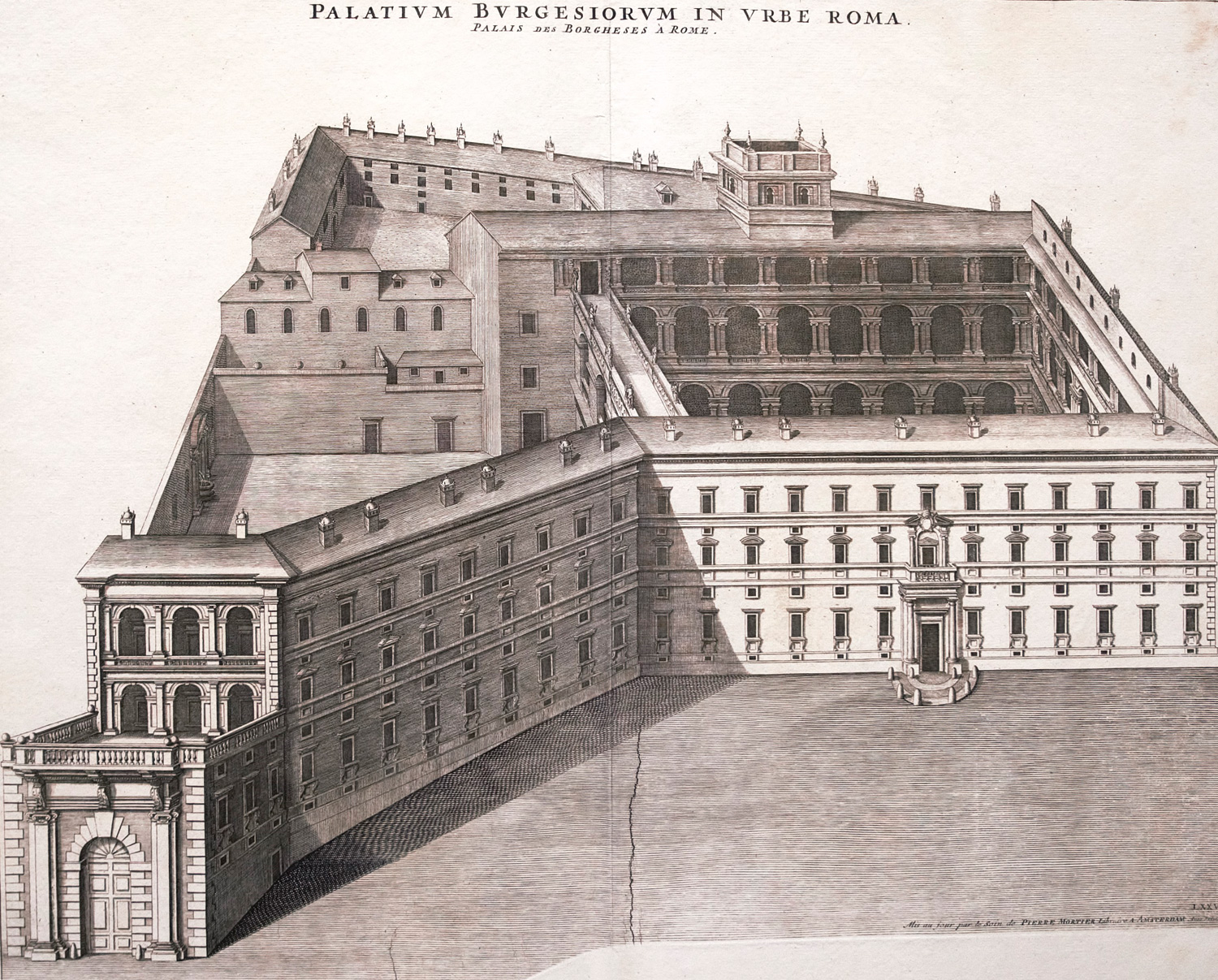 Vorhanden sind: "Palatium Burgesiorum in Urbe Roma", "Amphitheatrum tauri statilii", "Palatium burgesiorum in urbe Roma". – Mit Mittelfalz, etwas braunfleckig und mit vereinzelten hinterlegten Einrissen, sonst gute Exemplare.