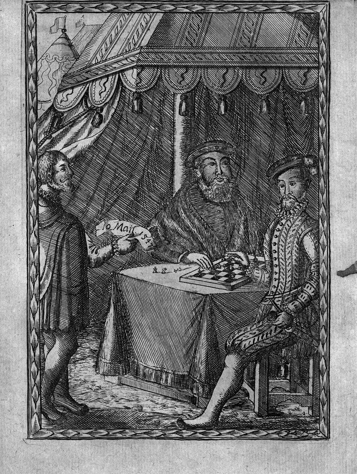 VD18 12955434. – Dritte Auflage der zuerst 1678 erschienenen Biographie des sächsischen Kurfürsten Johann Friedrich I. (1503-1554). Der für seine Arbeiten zur Geschichte Thüringens bekannte Jenaer Historiker Caspar Sagittarius (1643-1694) entwickelte "eine große Thätigkeit als Lehrer und als historischer Schriftsteller, eine Fruchtbarkeit, die ihm nicht immer zum Ruhme angerechnet wurde. Man muß ihn gleichwol zu den angeseheneren und verdienteren deutschen Geschichtforschern seiner Zeit zählen" (ADB XXX, 171). Das unter Schachsammlern sicher wenig bekannte Frontispiz zeigt den Kurfürsten unter einem Baldachin beim Spiel der Könige. – Frontispiz und Titel mit kleinem Wurmloch im weißen Bug, rechte untere Ecke leicht gestaucht, oberer Rand etwas knapp beschnitten.