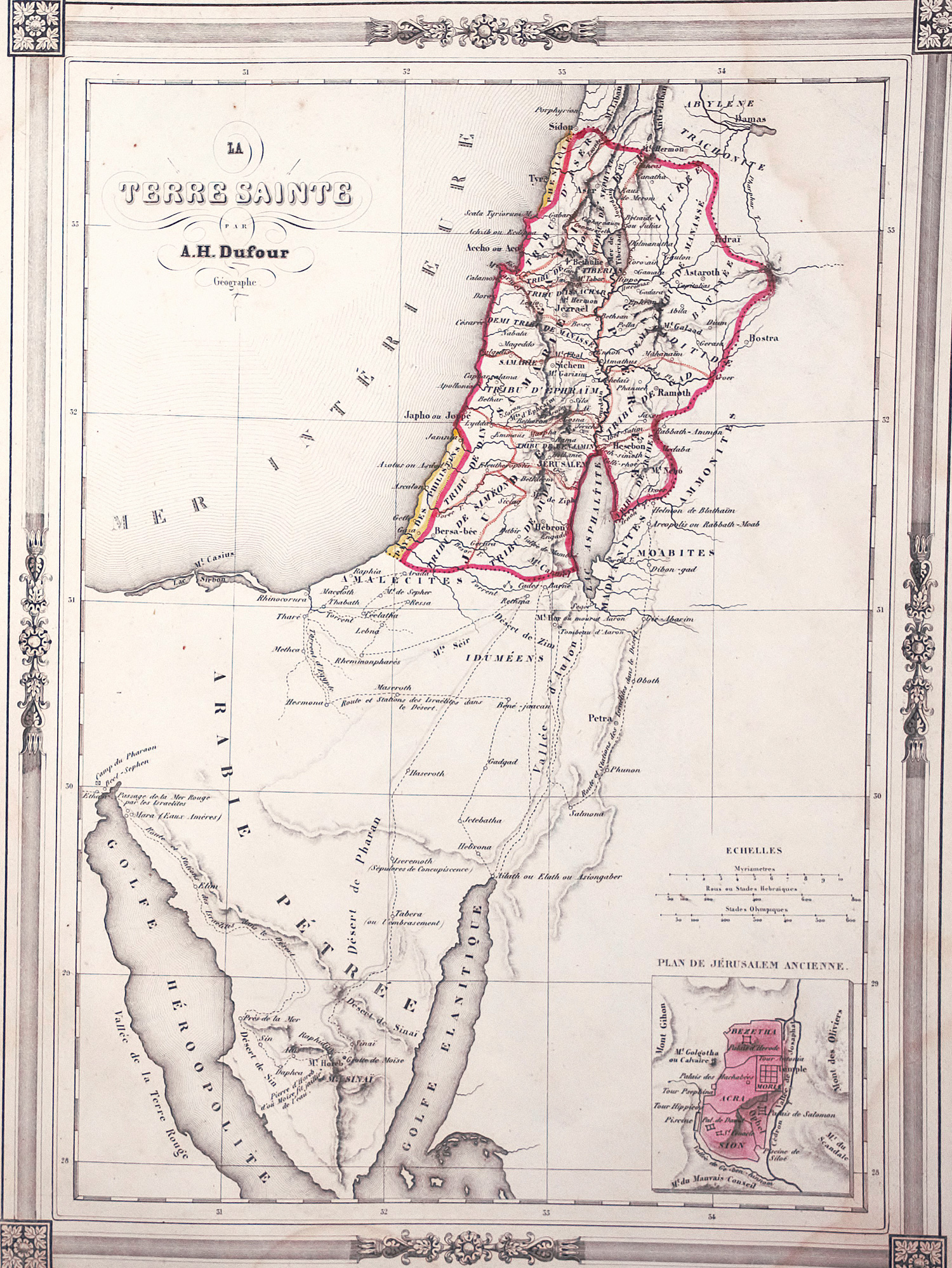 Barbie du Bocage, J. G. Atlas illustré destiné à l'enseignement de la géographie élémentaire. Stahlstichtitel, 1 Bl. Inhalt und 48 grenzkolorierten Stahlstichkarten von Ch. Smith. 33 x 25,5 cm. Pappband d. Z. (stark berieben und mit deutlichen Schabspuren). Paris, Basset und Lyon, Guyot, 1846.
