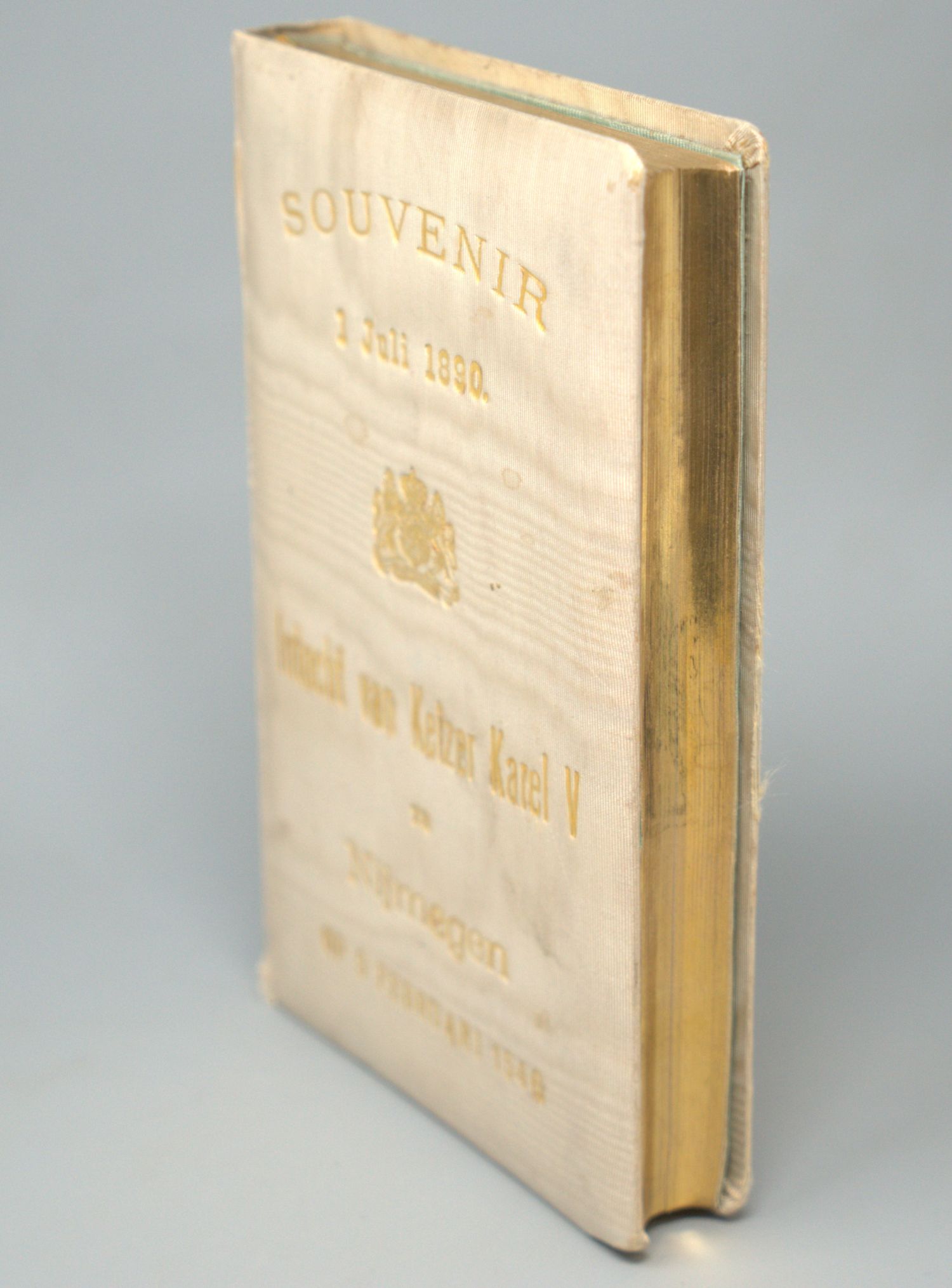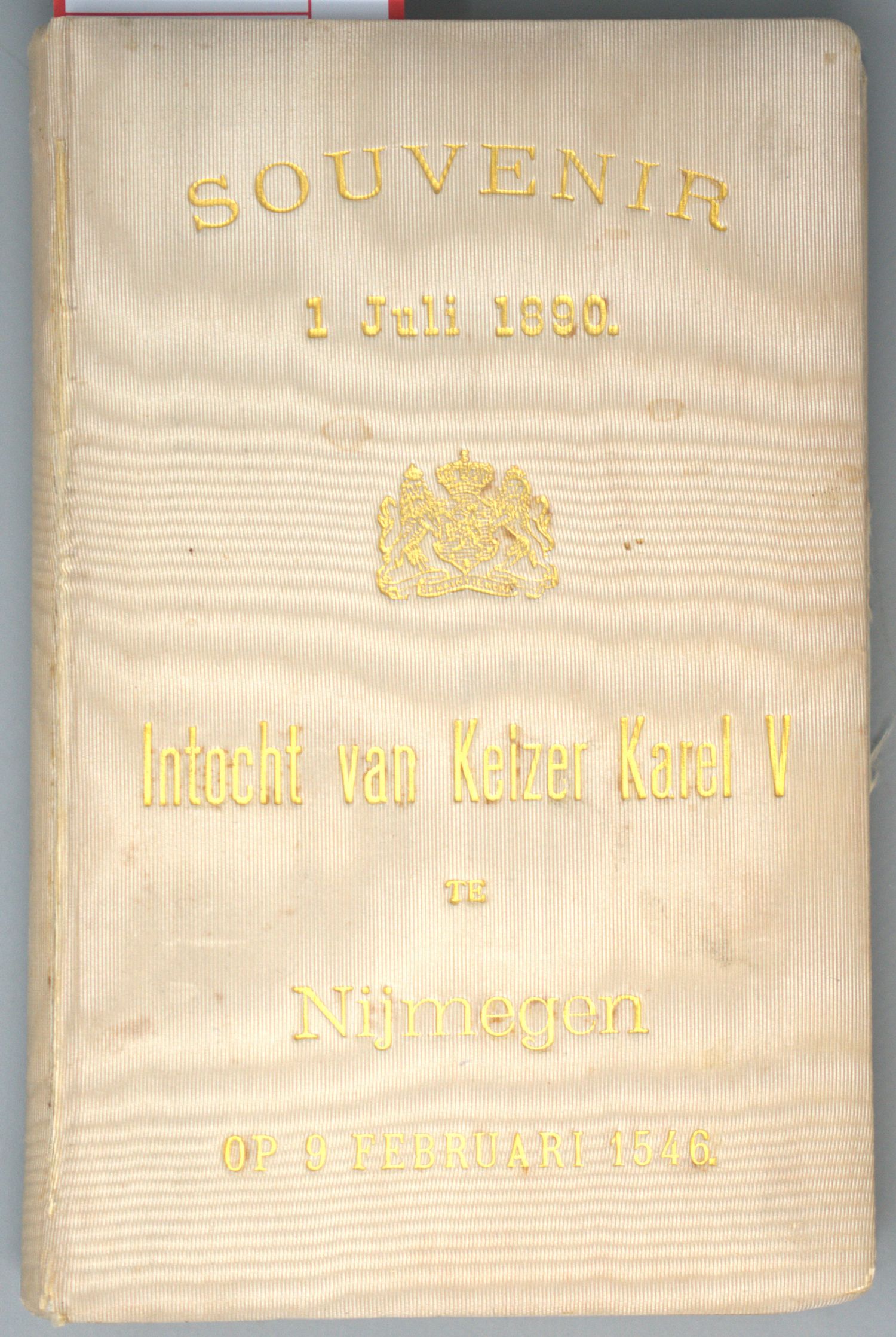 Darstellung eines Reiter-Lanzknechts der Zeit Karls V. hoch zu Ross auf seinem mit großem Federbusch geschmückten Pferd. Inhalt: Six en J. Acquoy. De intocht van Keizer Karel V binnen Nijmegen op 9 Februari 1546. XIV S., 1 Bl., 304 S. Mit Frontispiz. Leiden 1890. – Titel oben beschnitten (ohne Textverlust). Seidenband minimal angestaubt, kaum bestoßen.