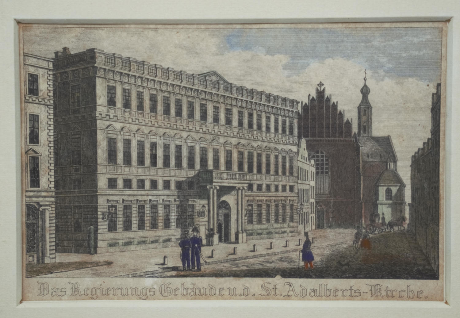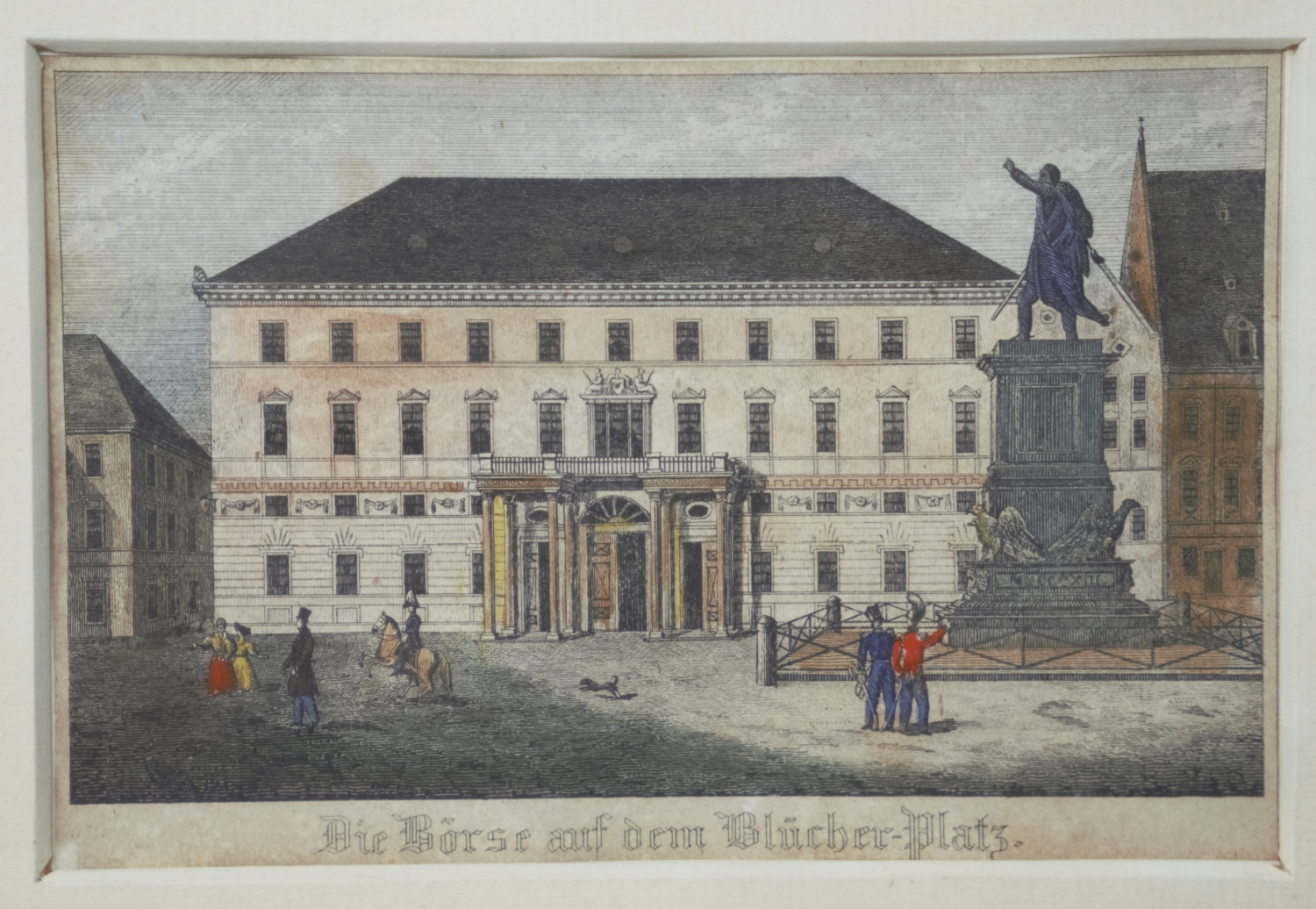 Vorhanden sind: I. Matthäus Merian. Virtute duce, comite Fortuna. 1625. - II. Uratislavia. Breßlau. Mit lateinischer und deutscher Legende. Um 1800. - III. Das Regierungs Gebäude u. d. St. Adalberts-Kirche. Denkmal des Grafen Tauentzien. Die Börse auf dem Blücher-Platz. Kolorierter Kupferstich. Um 1800. -IV. J. B. Hössel. Der Dom u. die Kreutz Kirche von der Ziegel Bastion zu Breslau. Um 1824. - V. Derselbe. Das Universitäts Gebäude zu Breslau. Um 1824. - VI. Derselbe. Der Parade Platz zu Breslau. Um 1824. – Mit kleinen Gebrauchsspuren, insgesamt gute Exemplare. Nicht ausgerahmt.