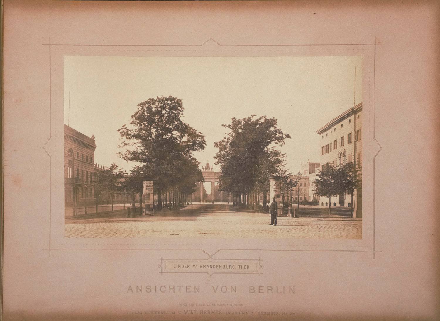 Schwartz, F. Albert. Ansichten von Berlin. Fotoalbum mit 20 Albuminabzügen auf Karton montiert von F. Albert Schwartz und H. Boll. 13 x 21cm (Foto) bzw 23 x 30,5 cm (Karton). Berlin, Wilhelm Hermes und H. Boll, o. J. (um 1880).