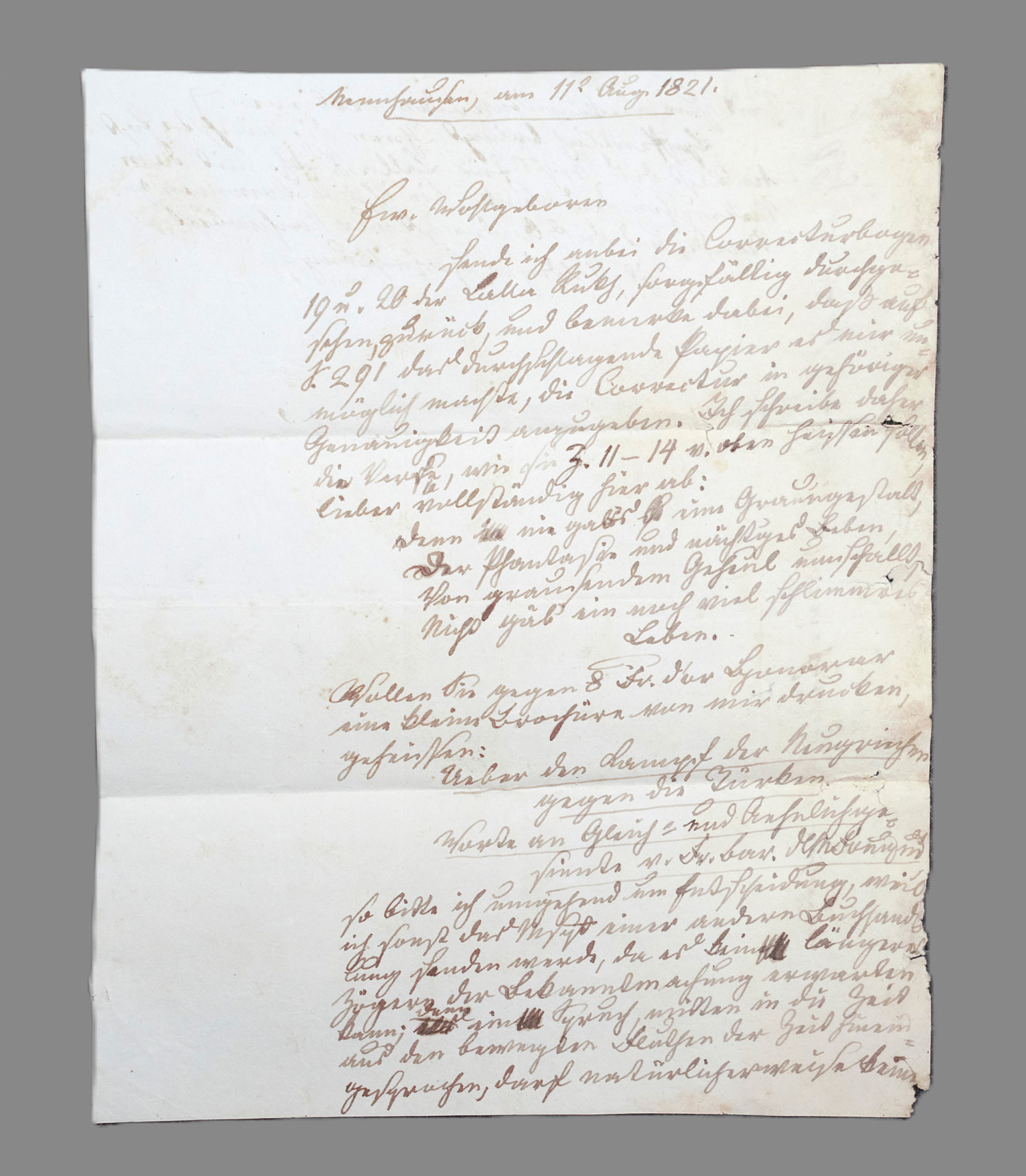 (1777-1843)Brief an den Musikverleger A. M. Schlesinger. August 1821