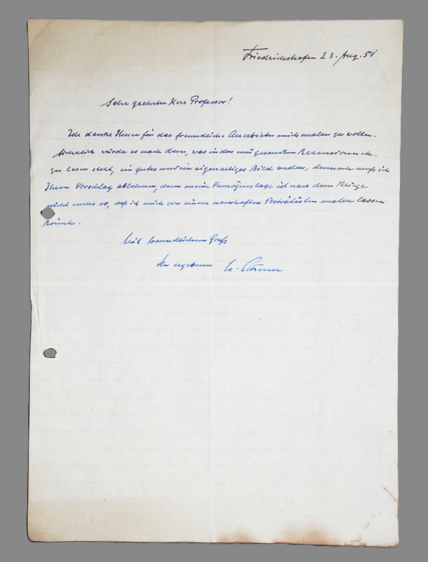 (1868-1954)Brief an einen Porträtmaler. Mit Beilage. 1951