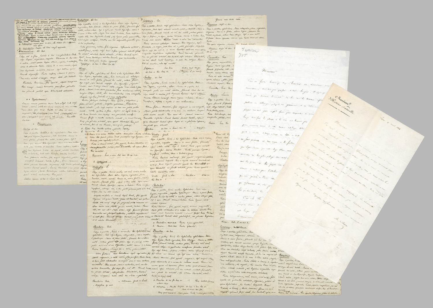 Jussieu, Adrien de, franz. Botaniker, Professor am Musée National d’Histoire Naturelle (1797-1853). 3 eigh. Briefe m. U. "Ad. d. Jussieu". In franz. Sprache. Zus. 12 S. in mikroskopisch kleiner Schrift. 4to und gr. 8vo. Santeuil und Paris 1839 und 1844.