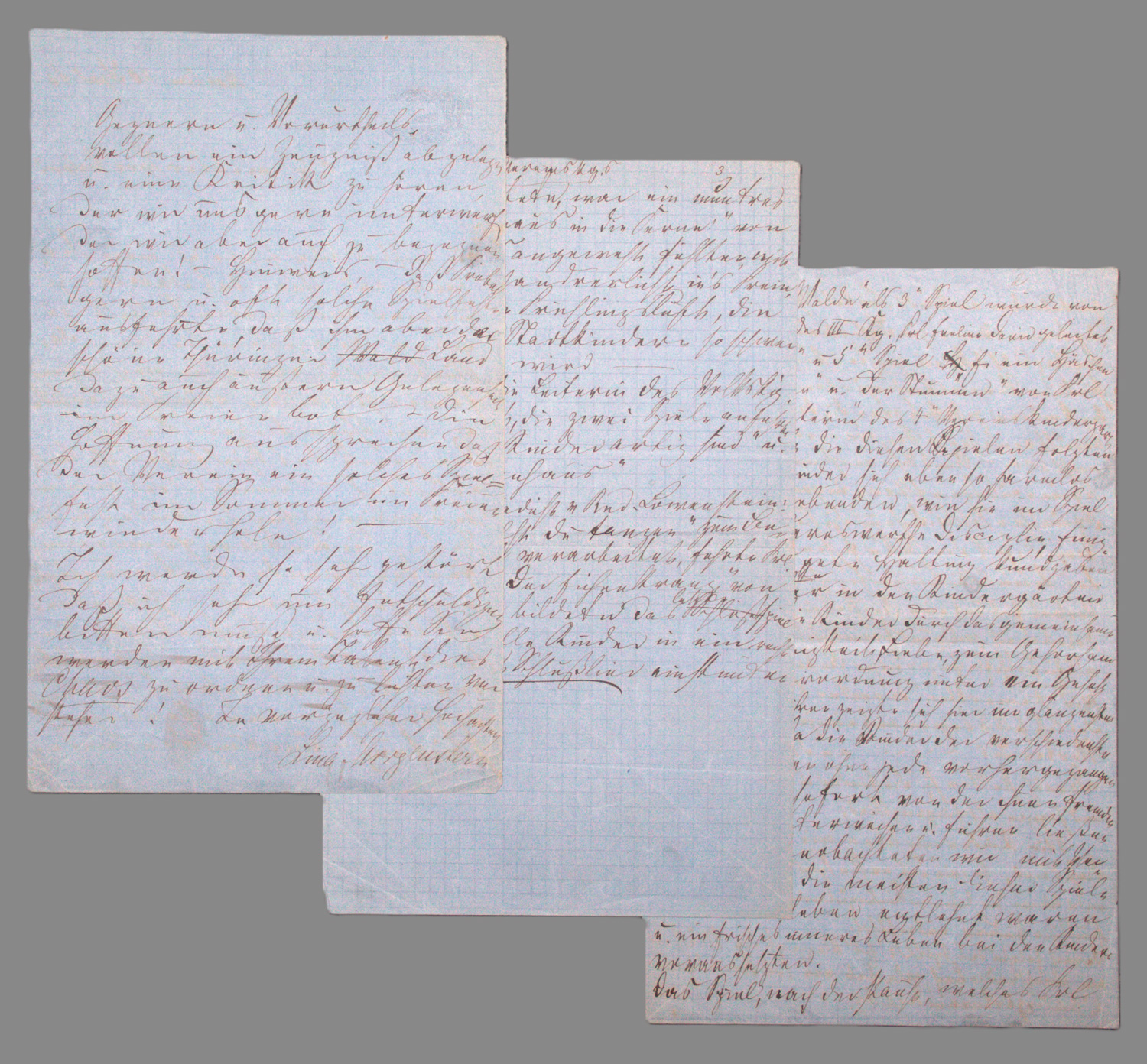 An den Publizisten Hermann Kletke (1813-1886), dem sie Informationen über ein bevorstehendes "Spielfest" zu Ehren Friedrich Fröbels liefert. "... In größter Eile führte ich mein Versprechen aus, Ihnen das Material zu unsrem morgendem Spielfest zu geben, verzeihen Sie daher das Flüchtige ... Der Zweck des Spielfestes ist leicht ersichtlich - einmal das reine Vergnügen für die Kinder, in deren Herzen die dankbare Erinnerung für den Gründer der Kindergärten aufgefrischt wird. - Zweitens das lebendige Beispiel für die Familie u. das größere Publikum, was das gemeinsame Spiel wirkt u. zugleich - eine öffentliche Prüfung - um auch den Feinden, Gegnern u. Vorurtheilsvollen ein Zeugniß abzulegen u. eine Kritik zu hören, der wir uns gern unterwerfen, der wir aber auch zu begegnen hoffen! - Hinweis, - daß Fröbel gern u. oft solche Spielfeste ausführte, daß ihm aber das schöne Thüringer Land dazu auch äußere Gelegenheit im Freien bot ...". - Beiliegend der 3seitige eigenhändige, für den Abdruck in der Zeitung bestimmte Bericht über das veranstaltete Kinderfest: "Zum Andenken an Friedr. Fröbels Geburtstag veranstaltete der Frauen-Verein zur Beförderung der Kindergärten ... ein großes Kinder-Spielfest sämtlicher Vereinskindergärten. Da auch die Theilnahme den Kindern gestattet war, die den Kindergarten bereits verlassen hatten, waren der Mitspielenden wohl 600. - Um 3 Uhr versammelten sich die Kleinen mit ihren Eltern im großen Saal des Arnimschen Hôtels ...". Es folgen Schilderungen der einzelnen Spiele und Gesänge, mit Nennung der leitenden Kindergärtnerinnen. - Wertvolle Einblicke in die Bestrebungen der frühkindlichen Pädagogik in der Nachfolge Friedrich Fröbels.