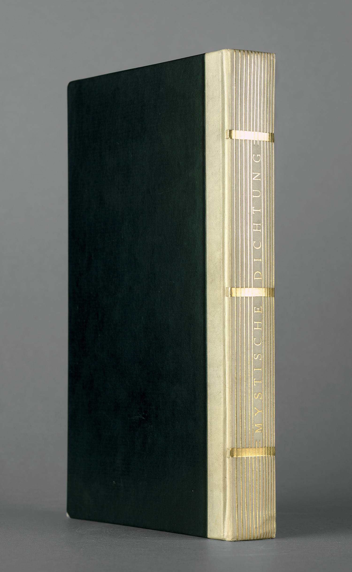Dorfner, Otto. - Mystische Dichtung aus sieben Jahrhunderten. Gesammelt, übertragen und eingeleitet von Friedrich Schulze-Maizier. Der Dom. 22,5 x 14 cm. Halbpergament (Deckel minimal berieben; mit linearer RVergoldung aus 12 Fileten und goldgeprägtem RTitel in Halbleinen-Kassette. Leipzig, Insel, 1925.