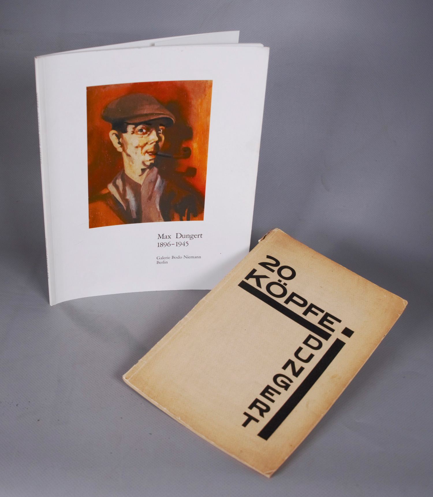 Enthält Reproduktionen der Portraits von P. Hindemith, H. Grünfeld, Paula Busch u. a. Dungert (1896-1945; vgl. Vollmer I 609) gehörte zur 'Novembergruppe' und beteiligte sich an deren Ausstellungen 1919-1929 und 1931. – Mit leichten Knickspuren an der oberen rechten Ecke. Selten. – Beigegeben: Derselbe. Ein Maler der Novembergruppe. Katalog der Galerie Bodo Niemann. 39 S. 26 x 21 cm. Illustr. OKarton (gering bestoßen). Berlin 1993. - Eines von 600 Exemplaren (Gesamtauflage).