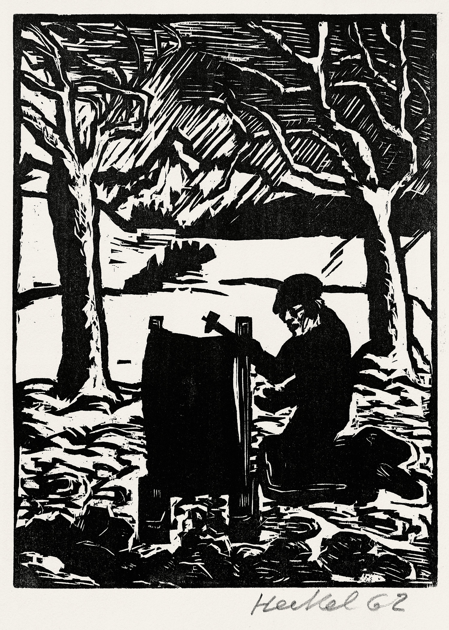 Arntz I 52. Riggs S. 345. Mason/Ludmann S. 140. – Eines von 50 Exemplaren (Gesamtauflage 600 Exemplare, die Nummer hier egschwärzt) der Vorzugsausgabe mit 6 Originalgraphiken: 3 Zwischentitelblätter ("Radierung", "Lithographie" und "Holzschnitt", jeweils mit einem anderem Signet "EH"), Lithographie "Dünental", Radierung "Stilleben" und Holzschnitt "Steineklopfer im Erzgebirge". Alle sechs Blätter auf Bütten, vom Künstler signiert und datiert "62" bzw. "63". Der erste Band behandelt die Holzschnitte, der zweite die Radierungen und Lithographien. Das Standardwerk verzeichnet 447 Holzschnitte, 196 Radierungen und 374 Lithographien, die alle abgebildet sind.