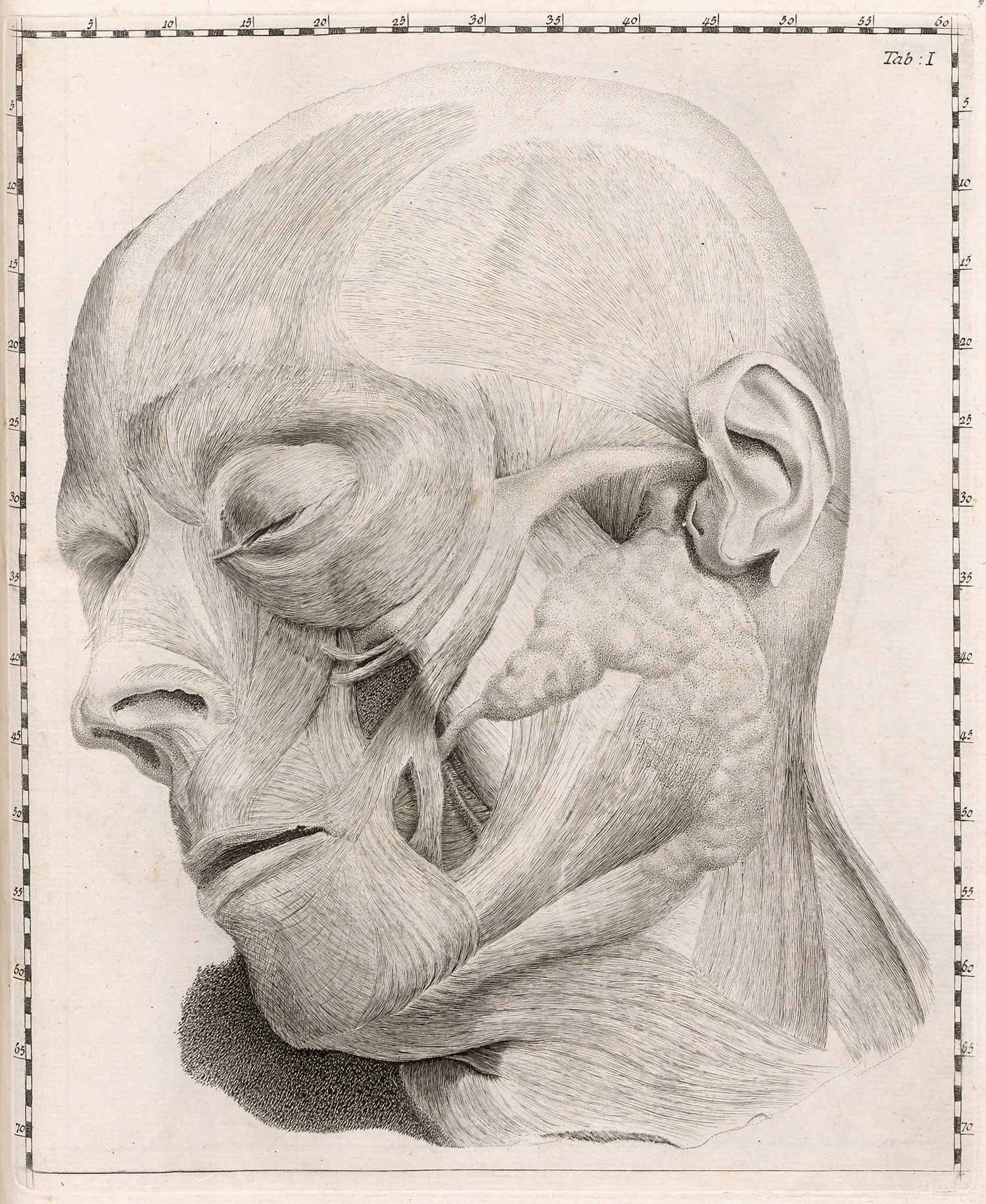 "Santorini gehört zu den hervorragendsten Anatomen seiner Zeit und stand wegen seiner sehr bedeutenden anatomischen Leistungen bei ballen gelehrten Zeitgenossen in grossem Rufe" (Hirsch-Hübotter). Für die Zeichnungen der Tafeln konnte eines der größten Künstlergenies Venedigs verpflichtet werden: Giovanni Battista Piazzetta (1682-1754), der auch die herrlichen Illustrationen für die 1745-Ausgabe Bernardo Tassos Ausgabe bei Vincenzo Valgrisi geschaffen hatte.