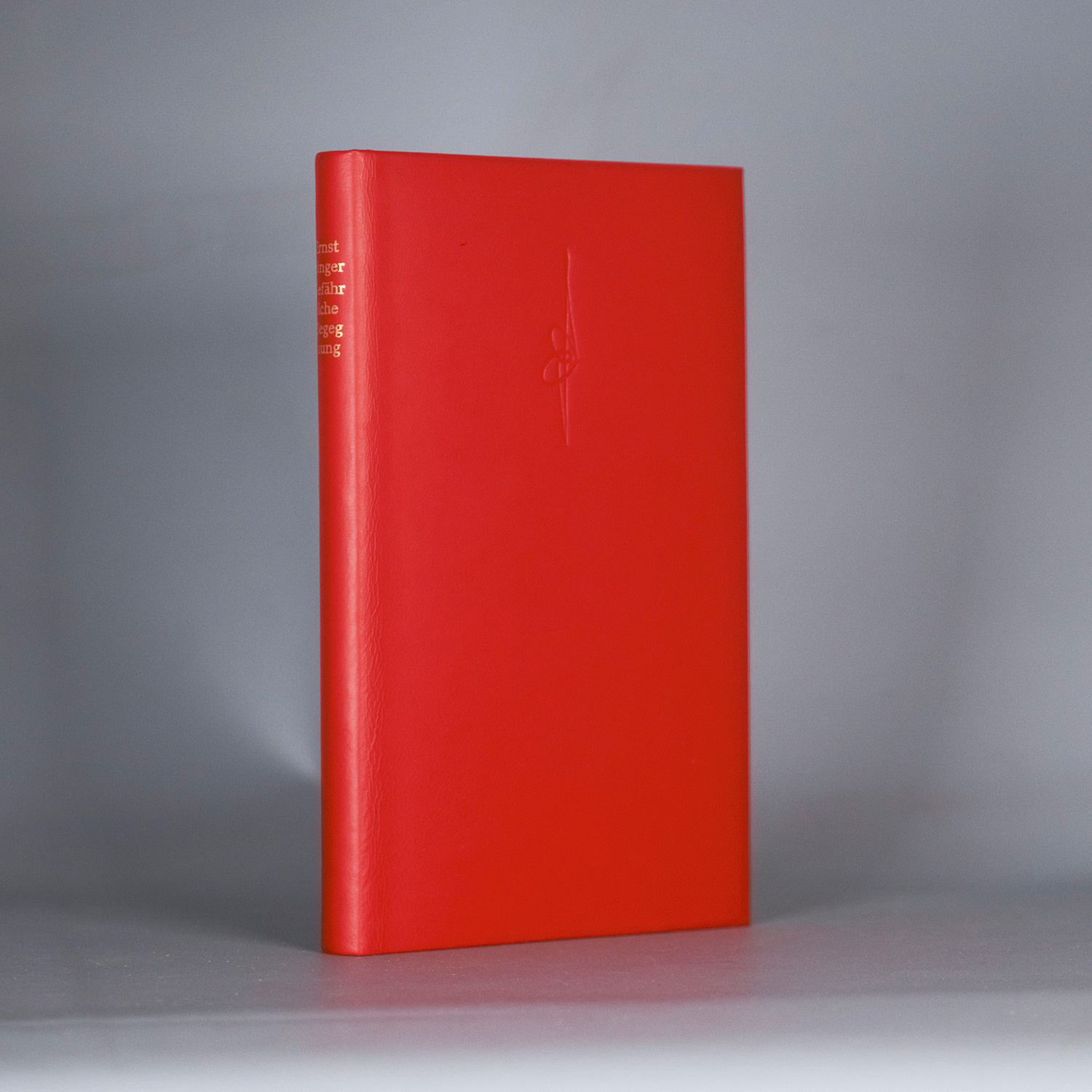 Jünger, Ernst. Eine gefährliche Begegnung. 169 S. 1 Bl. 21,5 x 12,5 cm. Rotes OLeder mit goldgeprägtem RTitel in Pappschuber. (Stuttgart), Klett-Cotta, (1985).