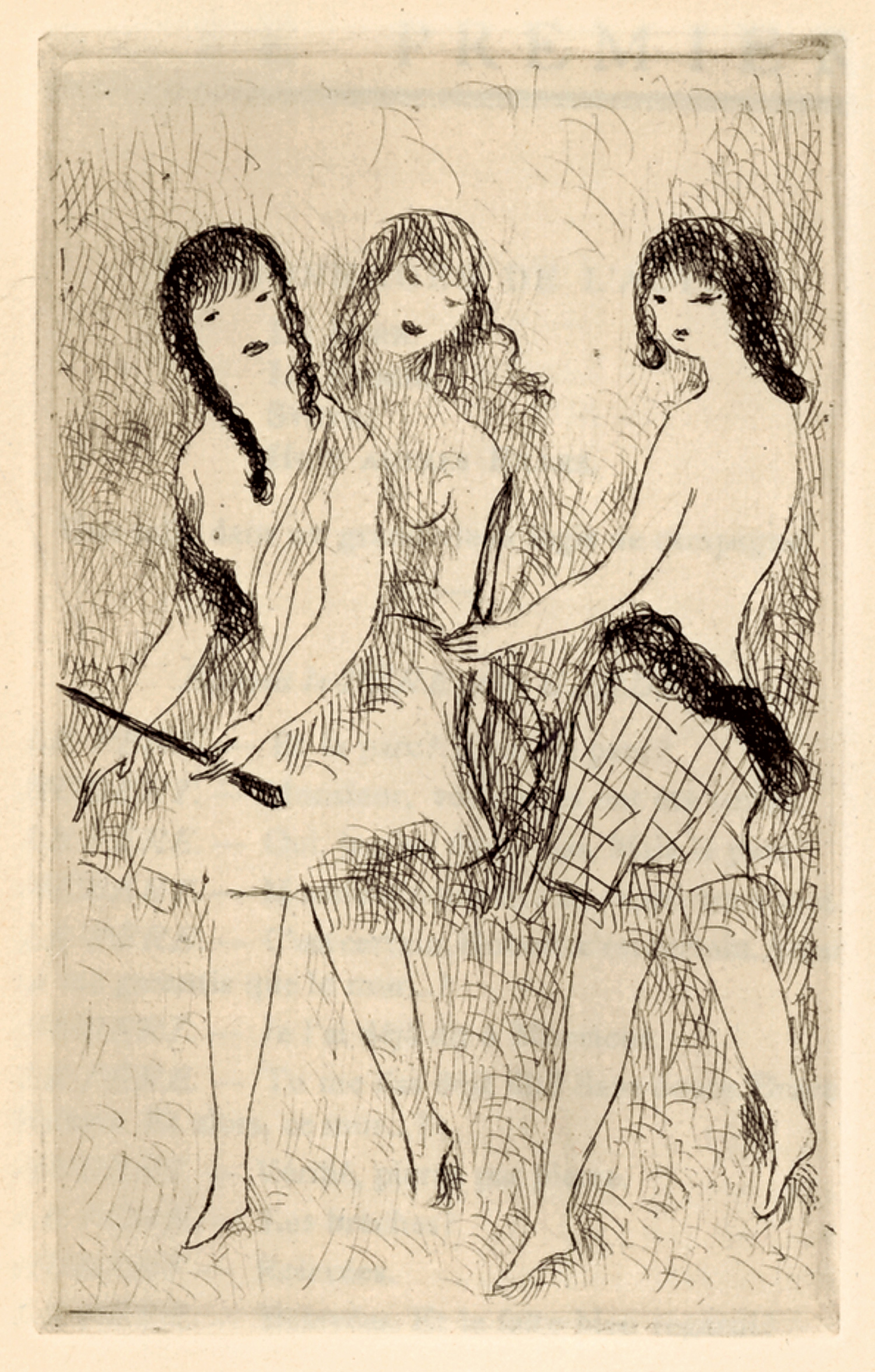 Laurencin, M. - Bloch, J.-R. Dix filles dans un pré. 3 Bl., 111 S., 2 Bl. Mit 4 ganzs. Orig.-Radierungen von Marie Laurencin. 19,5 x 14 cm. OKart. Paris, Au sans Pareil, 1926.
