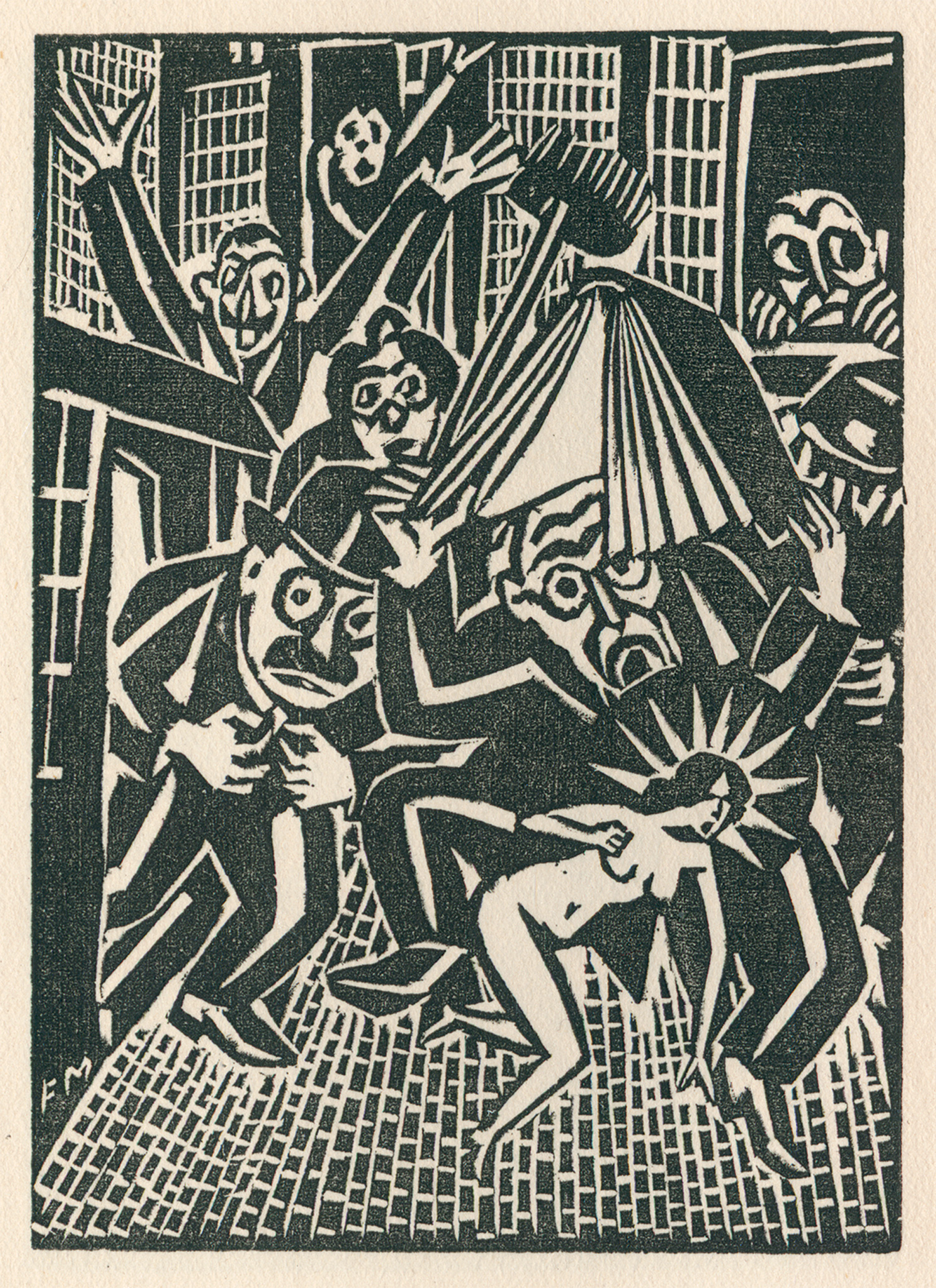 Masereel, Frans. Idée. Sa naissance, sa vie, sa mort. 6 Bl. und 83 Original-Holzschnitte. 16 x 12 cm. OBroschur (gebräunt) mit Pergaminumschlag. Paris, Édition Ollendorff, 1920.