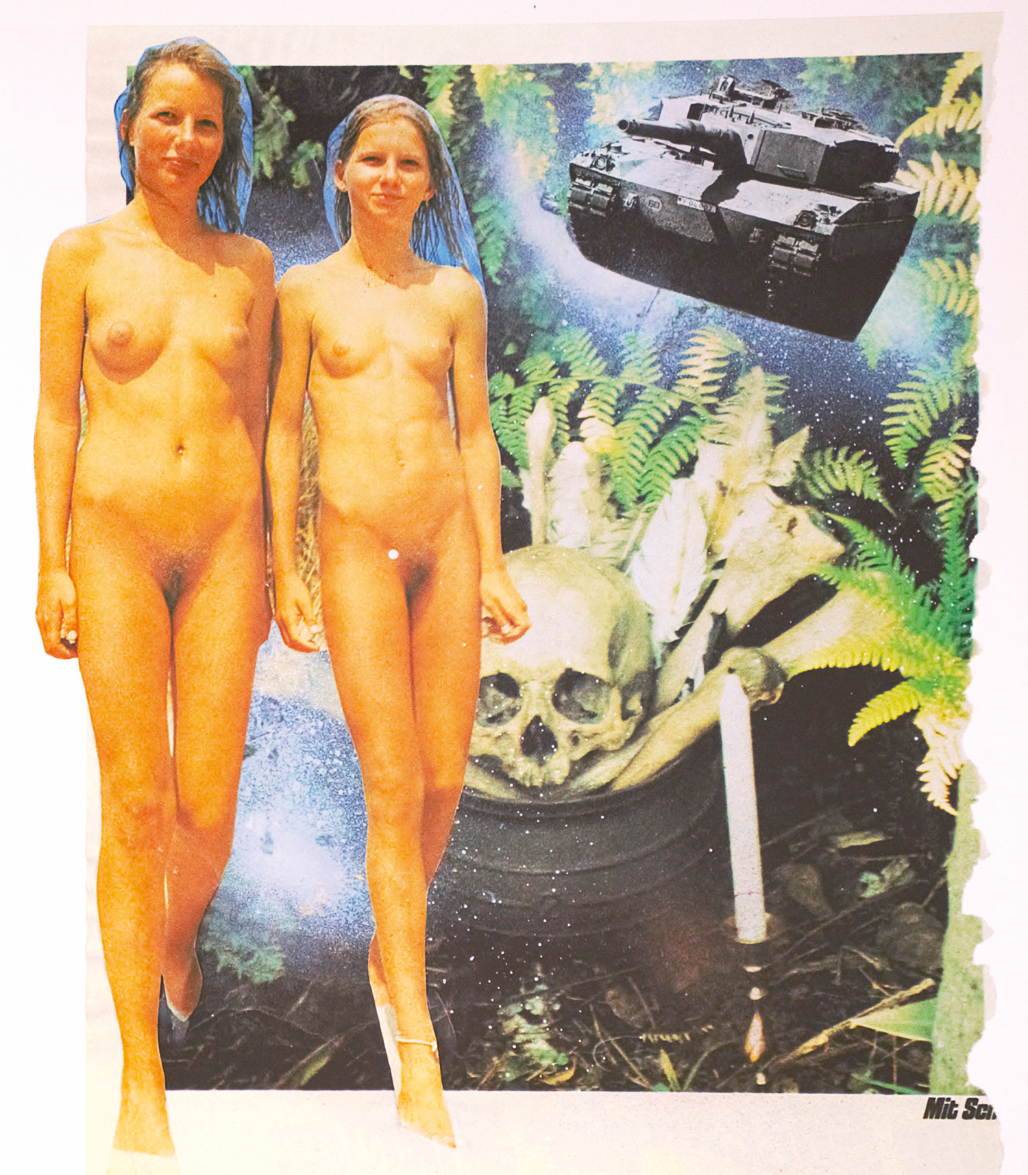 Erste Ausgabe. Nackte Mädchen, Panzer, Pfeifen, Schladerer Himbeergeist und andere skandalöse Nettigkeiten der Polit-Lustkunst. – Vord. fl. Vorsatz etwas fleckig, ansonsten sehr gutes Exemplar.