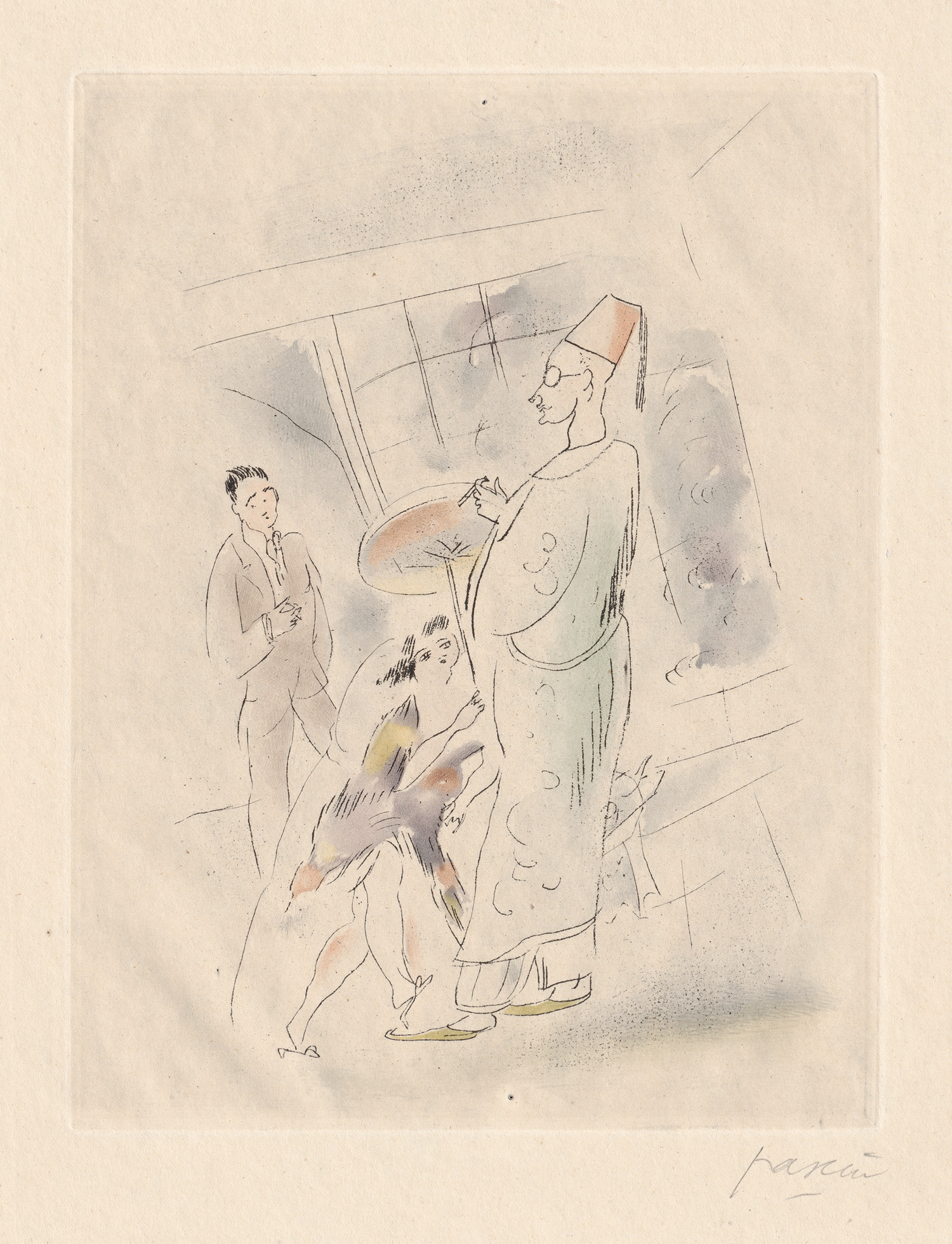 Carteret IV, 293. Skira 280. Strachan S. 55. – Eines von 10 Exemplaren in der Vorzugsausgabe auf Vieux Japon Teinté, mit der doppelten Folge der Radierungen auf Whatman und Japan sowie einer doppelten Folge der Textillustrationen auf 66 Tafeln. Beide Suiten durchgehend vom Künstler signiert und mit "G" bezeichnet. "Ensemble rare, recherché et coté" (Carteret). "The N.R.F. had added Pascin to their list of artists, with Paul Morand's Fermé la Nuit in 1925" (Strachan). Signierte und nummerierte Folgen der Radierungen und Illustrationen sind nur für die Exemplare der Vorzugsausgaben vorgesehen (insgesamt 37 Exemplare), die signierten Folgen der Illustrationen auf Tafeln sind aber im Impressum überhaupt nicht vermerkt. Ein Exemplar einer Vorzugsausgabe mit den signierten Graphiken in der Mappenausgabe konnten wir weder im Handel noch in einer Bibliothek oder in einem Museum nachweisen. – Sauberes Exemplar; von großer Seltenheit.