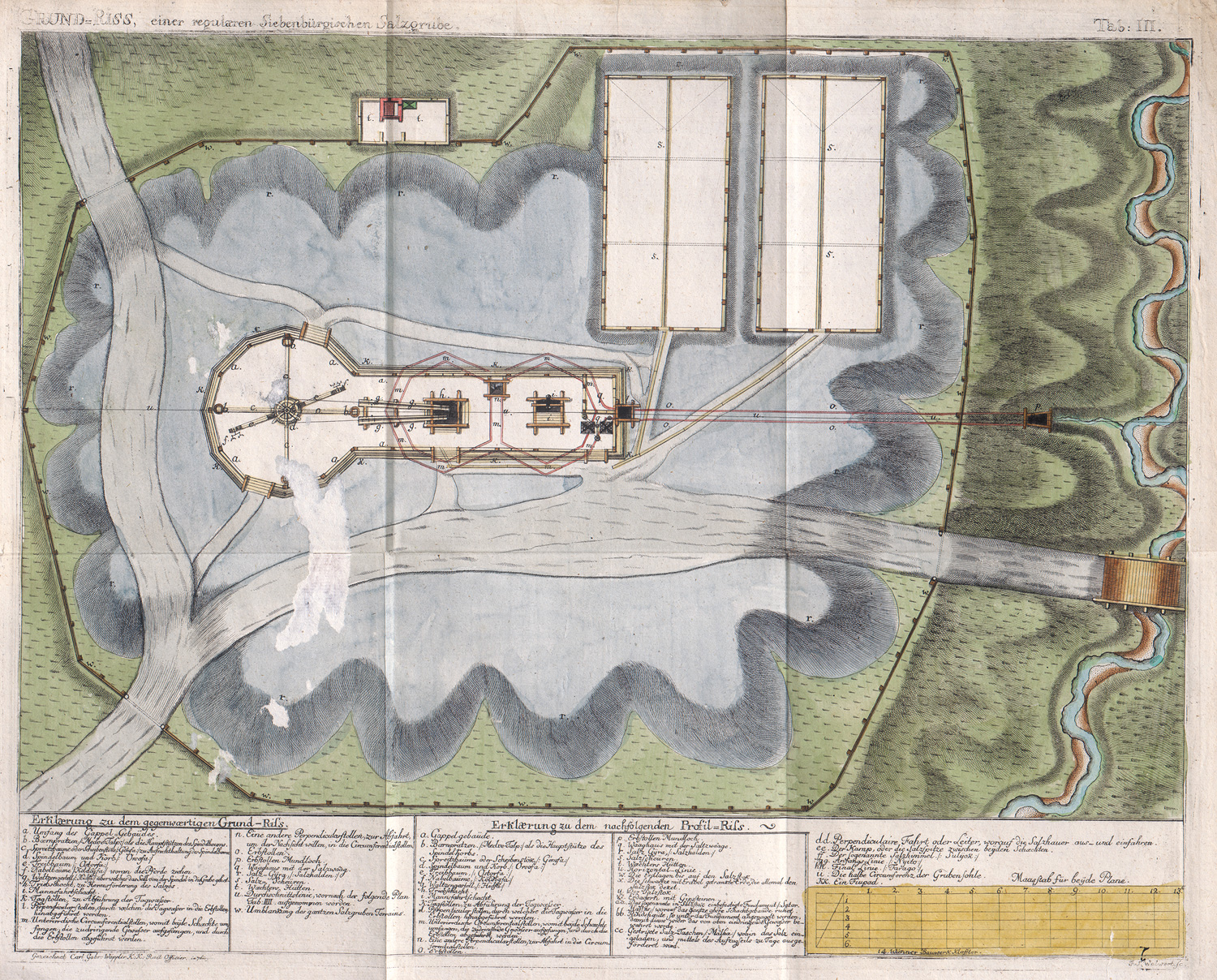 Poggendorff I, 743. – Einzige Ausgabe der Spezialabhandlung des aus Bratislava stammenden Juristen und autodidaktischen Mineralogen Johann Ehrenreich von Fichtel (1732-1795). "Wahrscheinlich durch seinen Freund, den Mathematiker und Mineralogen Johann Fridwalszky (†1784), Abt und Kanonikus zu Zips, angeregt, befaßte sich Fichtel neben seinen Berufsgeschäften auch mit den Naturwissenschaften. Im Rahmen von Reisenotizen beschrieb er unter genauer Fundortangabe Fossilien, fertigte Tabellen an mit der Beschreibung vornehmlich vulkanischer und metamorpher Gesteine und gab genaue Aufzeichnungen über Nichterze und Erze, dabei besonders auf Salz- und Goldvorkommen eingehend. Als vortrefflicher und kenntnisreicher Beobachter - seine Sammlung war in bezug auf Golderze eine der damals vollständigsten der Monarchie - verfaßte er umfangreiche Arbeiten, die ihn zum Begründer der mineralogischen, geologischen und paläontologischen Erforschung des Gebietes Siebenbürgen-Karpaten machen" (NDB V, 126). – Es fehlt der Haupttitel ("Beytrag zur Mineralgeschichte von Siebenbürgen" Teil I). Mit einigen im Rand beschnittenen Annotationen. Eine Falttafel mit sehr kleinem Randeinriss. Sehr schönes und sauberes Exemplar, Druck des Textes und der Tafeln auf sehr festem Bütten. – Beigebunden: Derselbe. Geschichte des Steinsalzes und der Steinsalzgruben im Großfürstenthum Siebenbürgen, mit einer, das Streichen des unterrirrdischen Salzstockes, durch mehrere Länder andeutenden Karte. 134 S., 1 Bl. (Errata). Mit 2 (statt 4) kolorierten gestochenen Faltkarten. Ebenda 1780. - Einzige Ausgabe, ebenfalls ohne den Haupttitel ("Beytrag zur Mineralgeschichte von Siebenbürgen" Teil II). Es fehlen zudem zwei Kupfer, eines der Kupfer mit Papierläsur in der Darstellung, sonst sehr schönes und sauberes Exemplar, der Druck ebenfalls auf sehr festem Bütten.