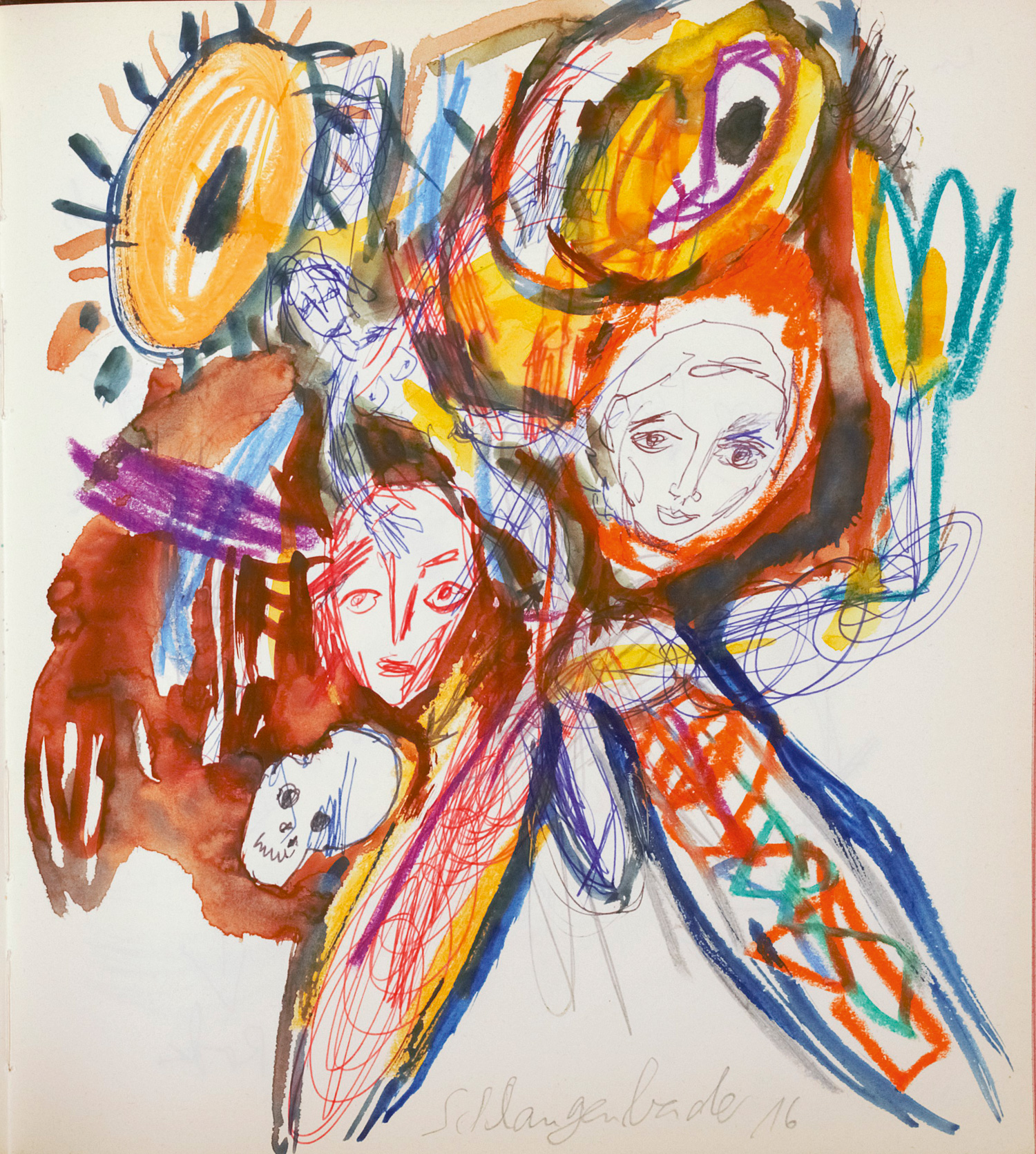 Der Berliner Künstler Peter Schlangenbader (geb. 1953) ist ein Meisterschüler von Martin Engelman und ein Vertreter der Berliner "Heftigen Malerei".