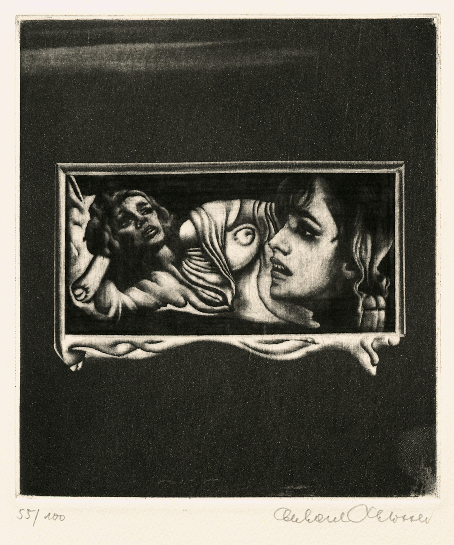 Schlotter Werkverzeichnis 848-863. – Eines von 100 nummerierten Exemplaren, daneben erschienen fünf römisch nummerierte Künstlerexemplare und zehn unnummerierte Suiten kleineren Formats. Alle Radierungen signiert, nummeriert und mit dem Trockenstempel der Edition Kress, München versehen. Erotisch geprägte Graphikfolge. Mit einem Vorwort von Peter Gorsen. Eberhard Schlotter (geboren 1921) wirkte schon in jungen Jahren als Künstler, nach Rückkehr aus der Kriegsgefangenschaft lebte er lange Jahre in Darmstadt und war für kurze Zeit Vorsitzender der dortigen Neuen Sezession. Seit Ende der 1950er Jahre arbeitet er zunehmend in Spanien. – Annähernd verlagsfrisch erhalten.