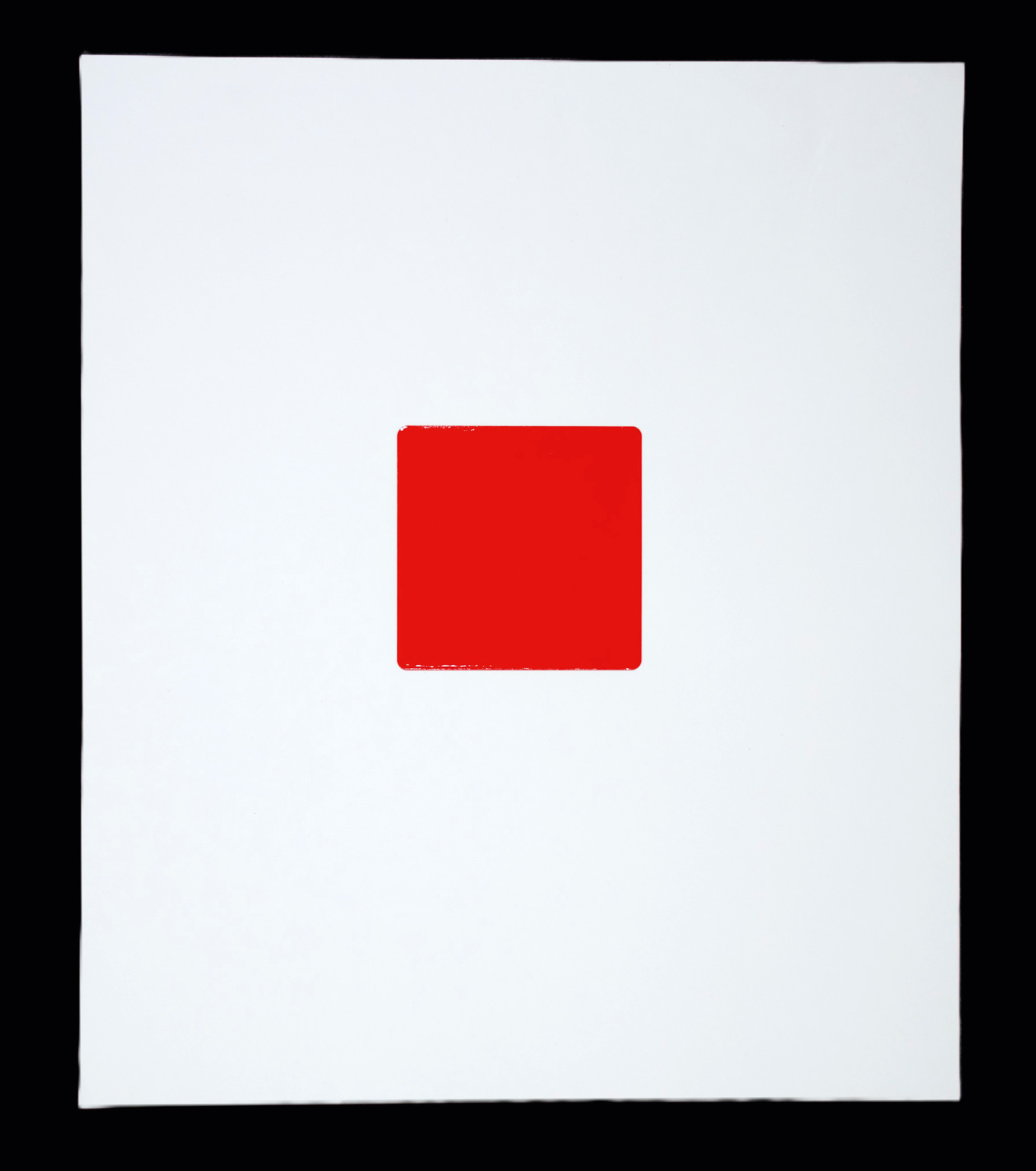 Ein rotes, leuchtendes Quadrat auf weißem Grund. Die minimalistische, streng konzentrierte Arbeit steht exemplarisch für Yuji Takeokas (geb. 1946) künstlerische Haltung, die sich zwischen japanischer, reduzierter Formtradition und westlicher Minimal Art bewegt. – Verso am oberen Rand mit größerer Abriebstelle - eine Spur früherer Montierung, ansonsten in sehr guter Erhaltung. Versand ohne Rahmen.