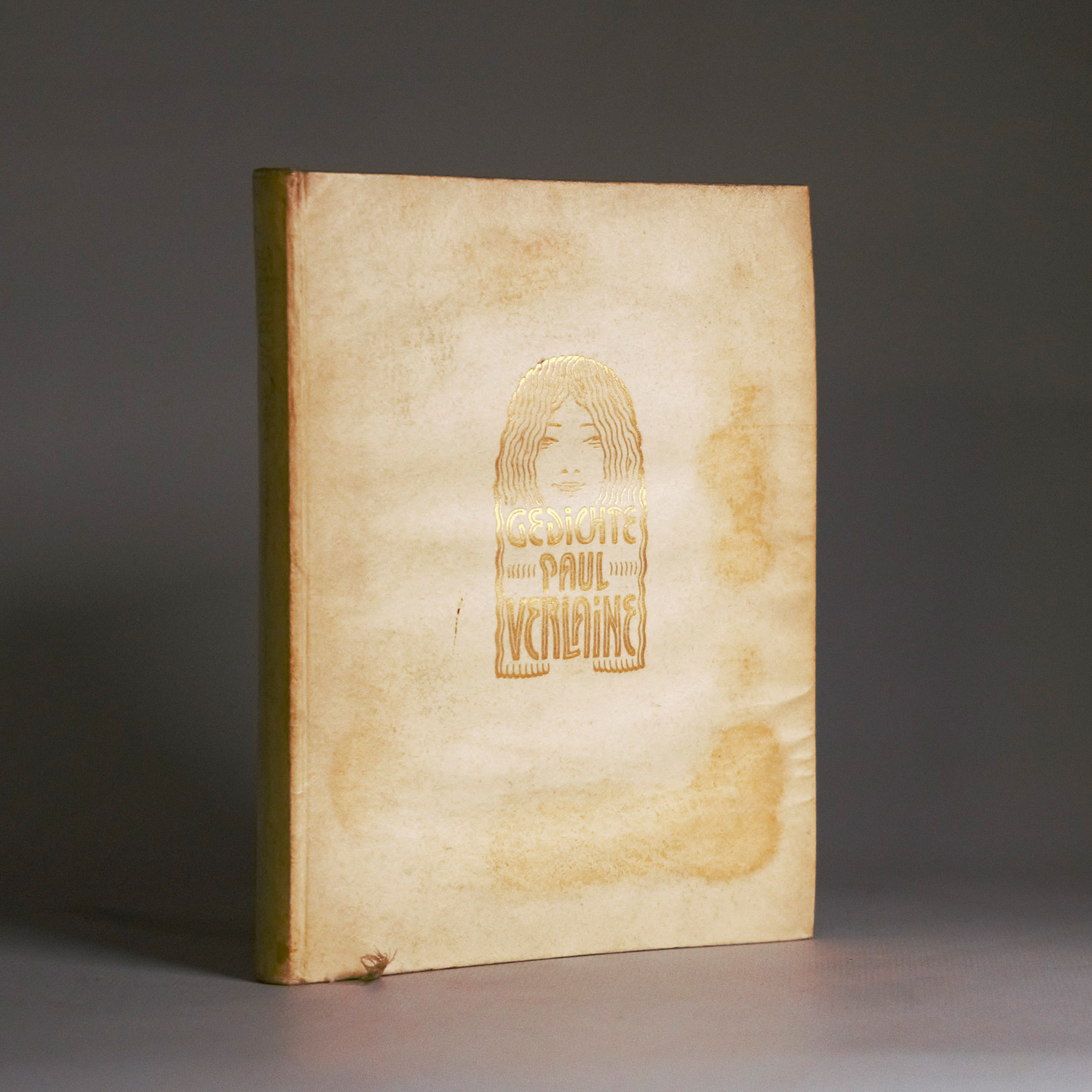 Verlaine, Paul. Ausgewählte Gedichte. Übertragen von W. von Kalckreuth. 156 S., 2 Bl. Mit illustriertem Titel und zahlreichen Vignetten von Heinrich Wilhelm Wulff. 19 x 13,5 cm. OPergamentband (etwas fleckig) mit goldgepr. Vignette und Kopfgoldschnitt. Leipzig, Insel, 1906.