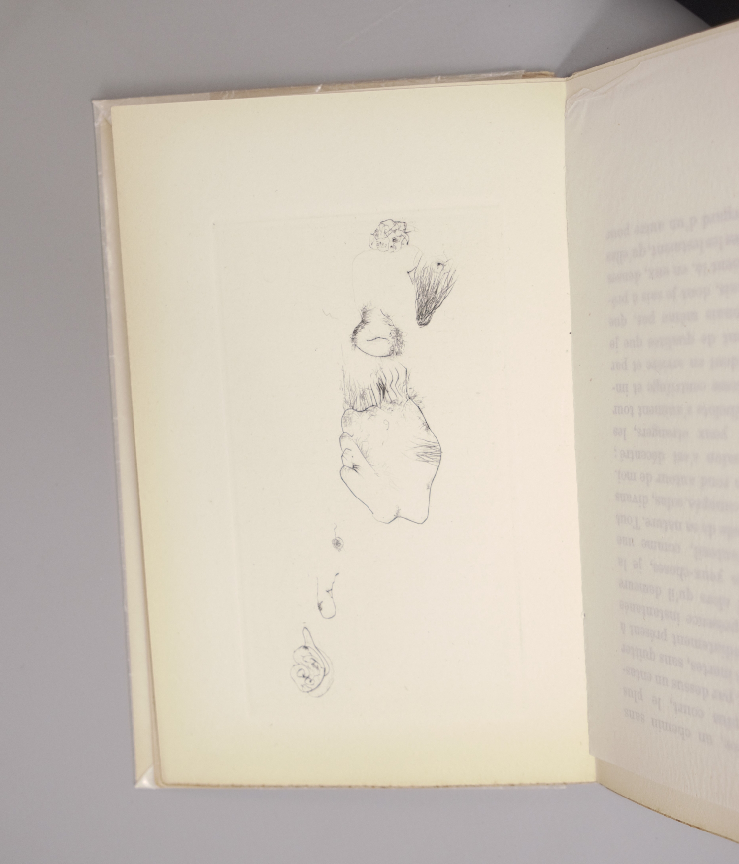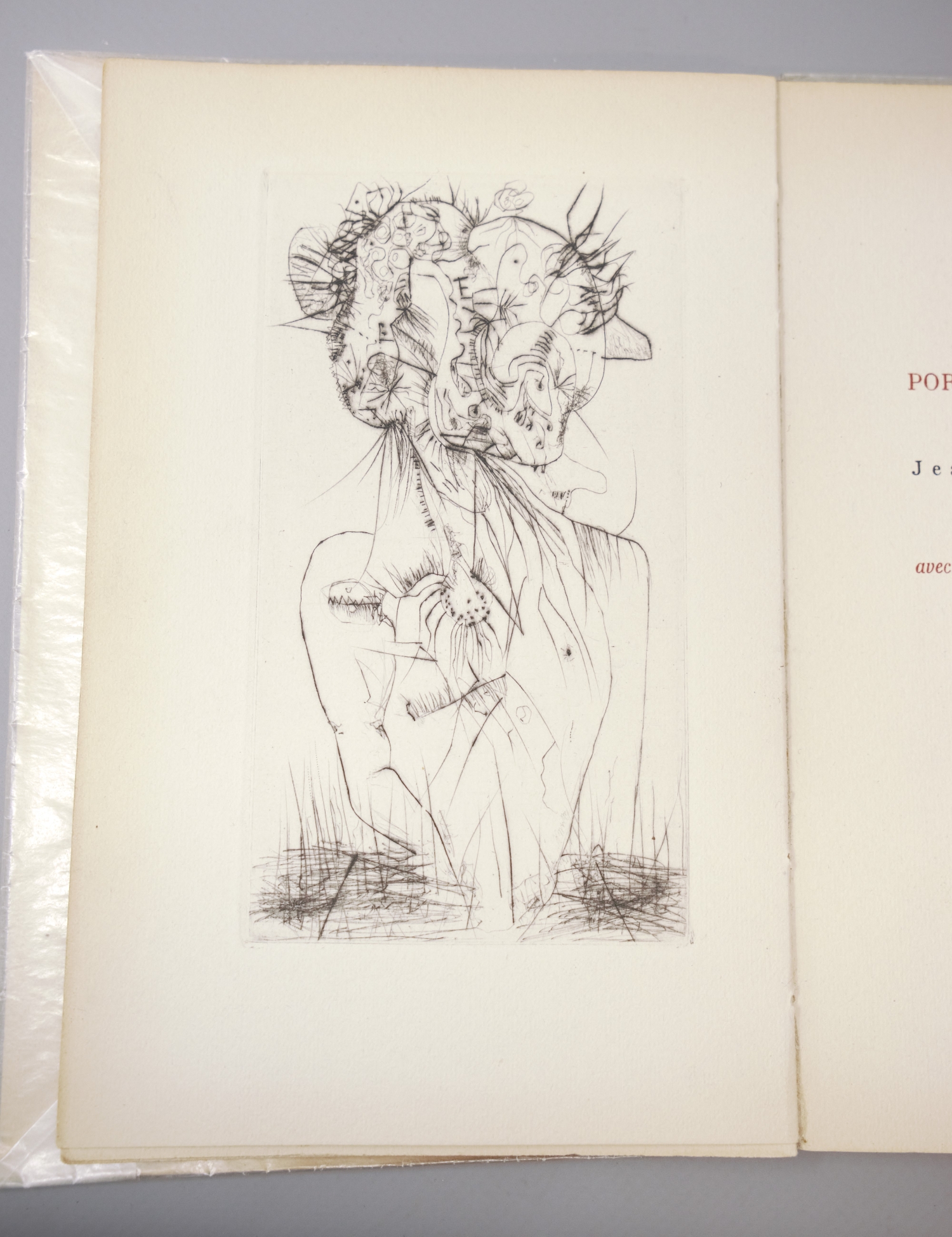 Wols. - Sartre, Jean-Paul. Visages précédé de portraits officiels. 41 S., 2 Bl. Mit 4 Orig.-Kaltnadelradierungen von Wols (d. i. Wolfgang Schulze). 19,5 x 13 cm. OBroschur (etwas lichtrandig). Paris, Seghers, 1948.