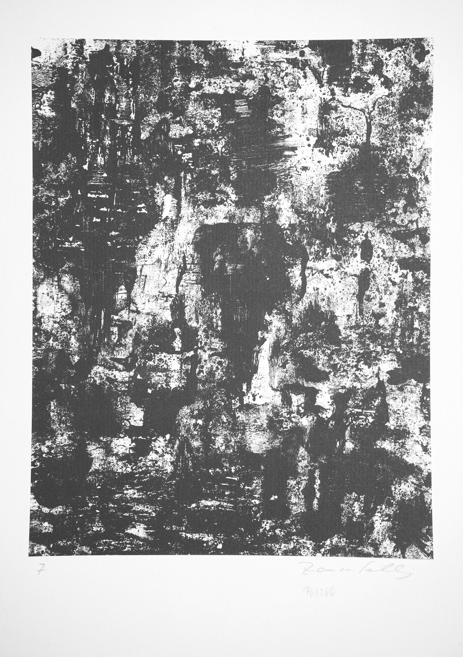 Künstlergraphikmappe mit 7 expressiv-abstrakten Lithographien, jeweils in einer nummerierten Auflage von 280 Exemplaren gedruckt. Die Titel der Blätter lauten: "Meermorgen, Engel gebändigt, Zeichenhaft-landschaftlich, Trauer, Verbracht ins Gelände und Gelichtete Schatten". – In sehr guter Erhaltung.