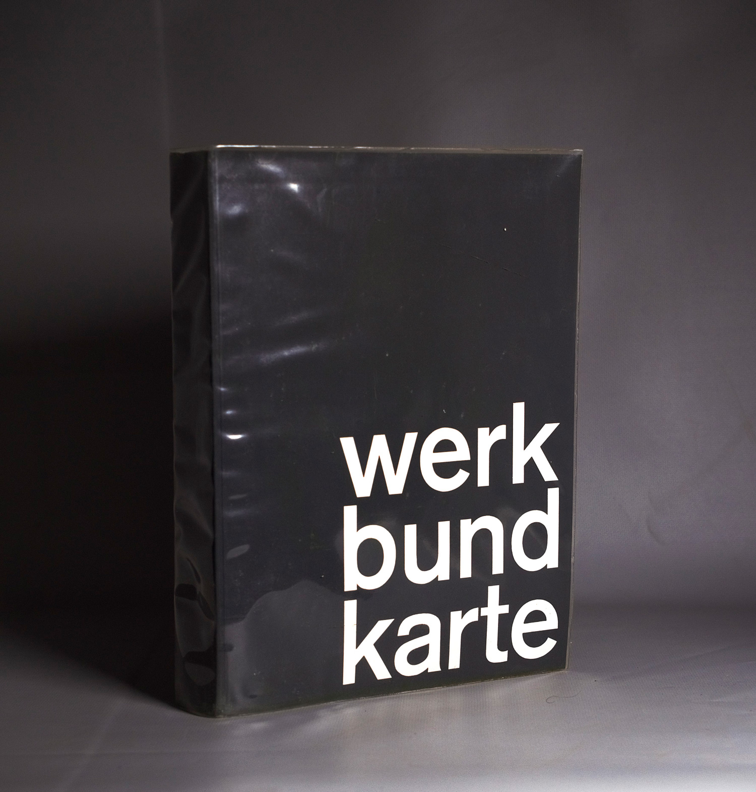 Werkbundkarte. - Eine Auswahl des Deutschen Werkbundes Hessen. 4 Bl. Mit 141 farbig gedruckten, teilweise reliefgeprägten Tapetenmustern. 29,8 x 21,6 cm. OBroschur in transparentem Umschlag (kaum Gebrauchsspuren). Frankfurt a. M., Deutscher Werkbund Hessen, 1966.