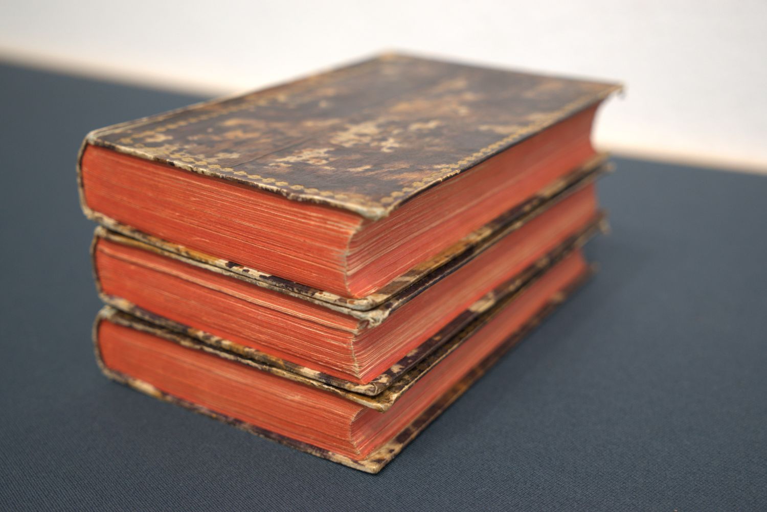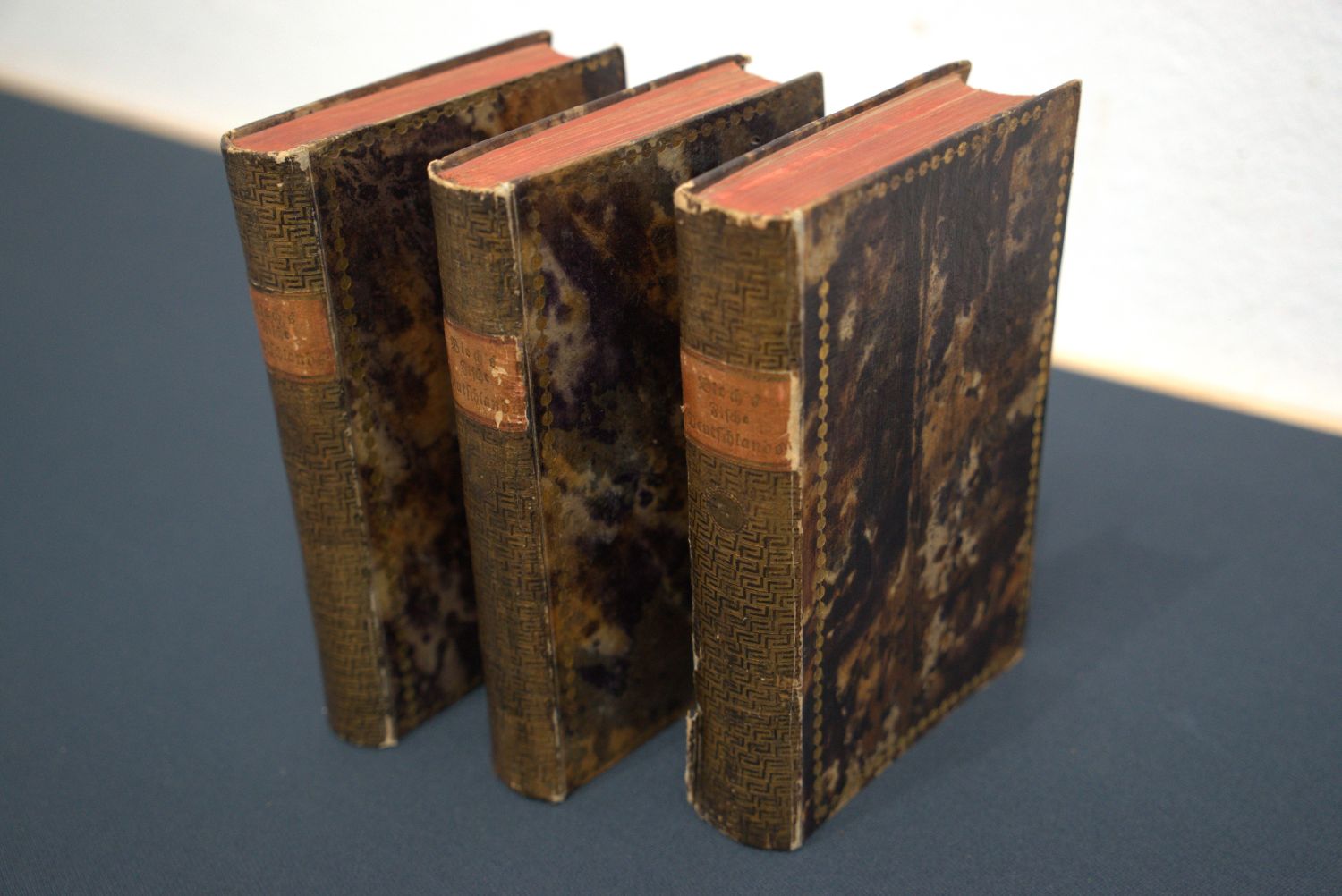 Bloch, Marcus E. Ökonomische Naturgeschichte der Fische Deutschlands. 3 Bände. Mit 108 kolor. Kupfertafeln. 19,5 x 12 cm. Pappbände d. Z. mit vergold. Deckelfilete, reicher RVergoldung und goldgepr. RSchild (etwas bestoßen und berieben). Berlin, auf Kosten des Verfassers, 1783-1785.