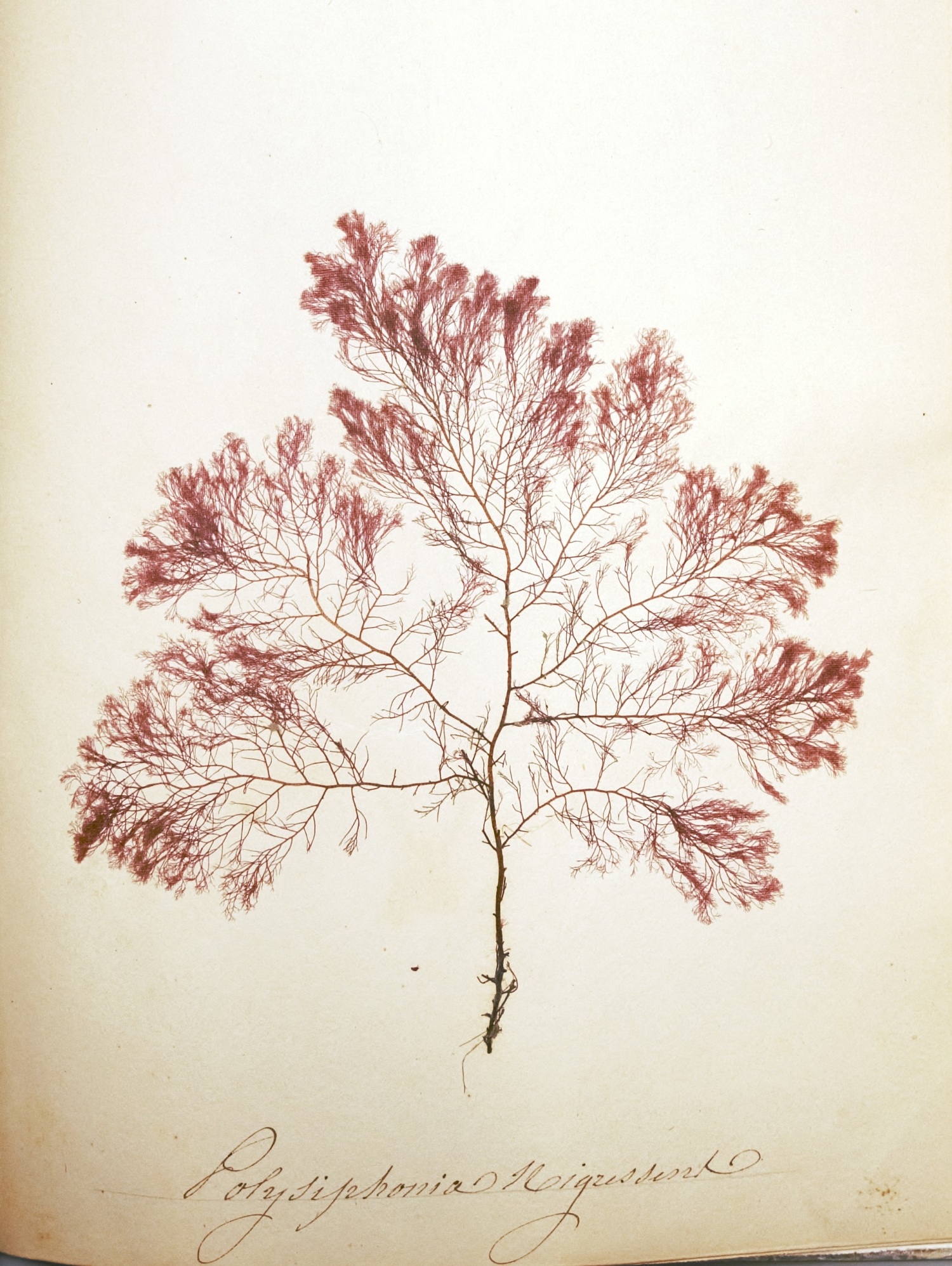 Sorgfältig zusammengestellte Sammlung verschiedenster Algen der Bretagne, mit hs. Beschriftung. Wohl ein Geschenk für Amadeus Ferdinand Maria von Savoyen (1845-1890), dem König von Spanien und Herzog von Aosta. – Innengelenke etwas geöffnet, gewellt, papierbedingt gebräunt und leicht stockfleckig. Mit einem Exlibris auf dem Vorsatz der Königin von Italien Elena von Montenegro (1873-1952) "Ex Libris helenae italiae reginae".