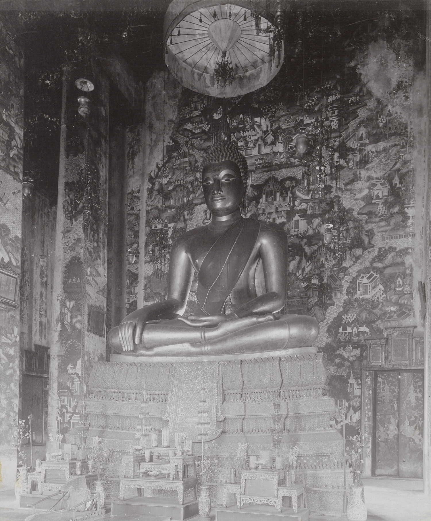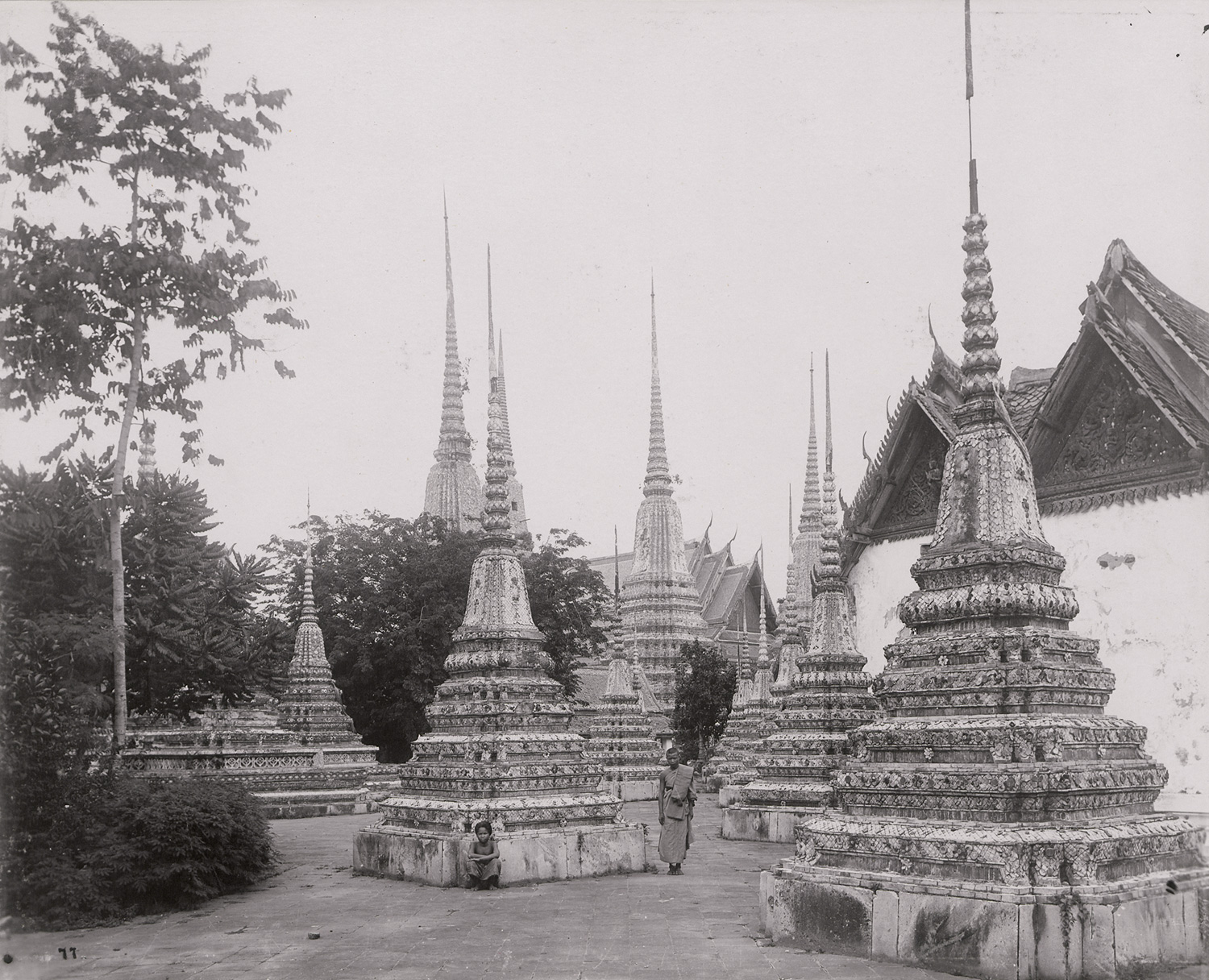 Photographer: Philip Klier (active ca. 1880-1911). Views of Bangkok, Paknam, Rangoon, and Mandalay. 1906. 22 gelatin silver and collodion prints, mounted to boards. Each ca. 22,5 x 28,5 cm (28,5 x 40 cm). Most with handwritten caption in black ink below the image on the mount, some with the photographer’s studio information in the negative.