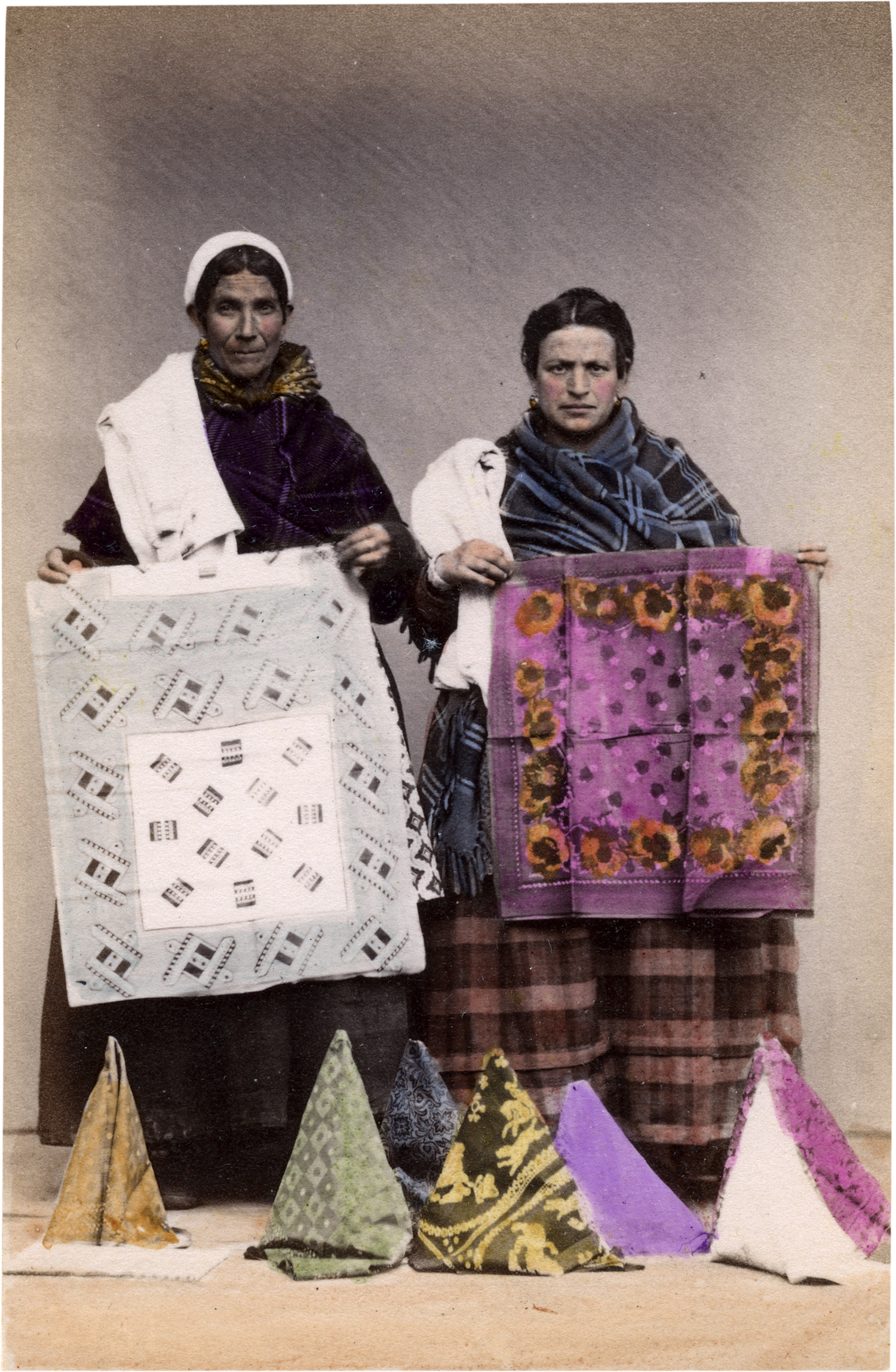 This group of hand-colored photographs presents a vivid cross-section of everyday working life in 19th-century Naples. Shown are street vendors, performers, beggars, and artisans - each depicted with their characteristic tools, costumes, or wares, from fishmongers and launderers to cobblers and textile sellers. Carefully staged and richly hand-tinted, the prints belong to a genre popular among foreign travelers, offering romanticized yet documentary portrayals of local Neapolitan “types.” – Some minor scuff marks and surface irregularities as well as occasional foxing and edge wear to mounts, otherwise all in near excellent condition with well-preserved color and strong tonal range.